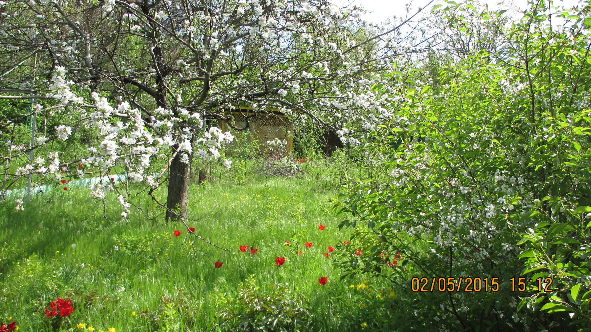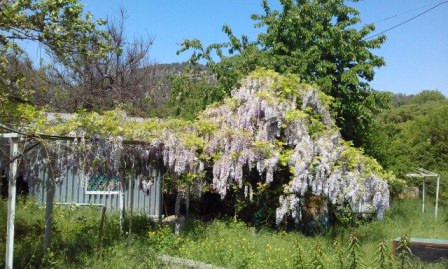 На участке растут плодовые деревья - кизил, черешня, яблоня.