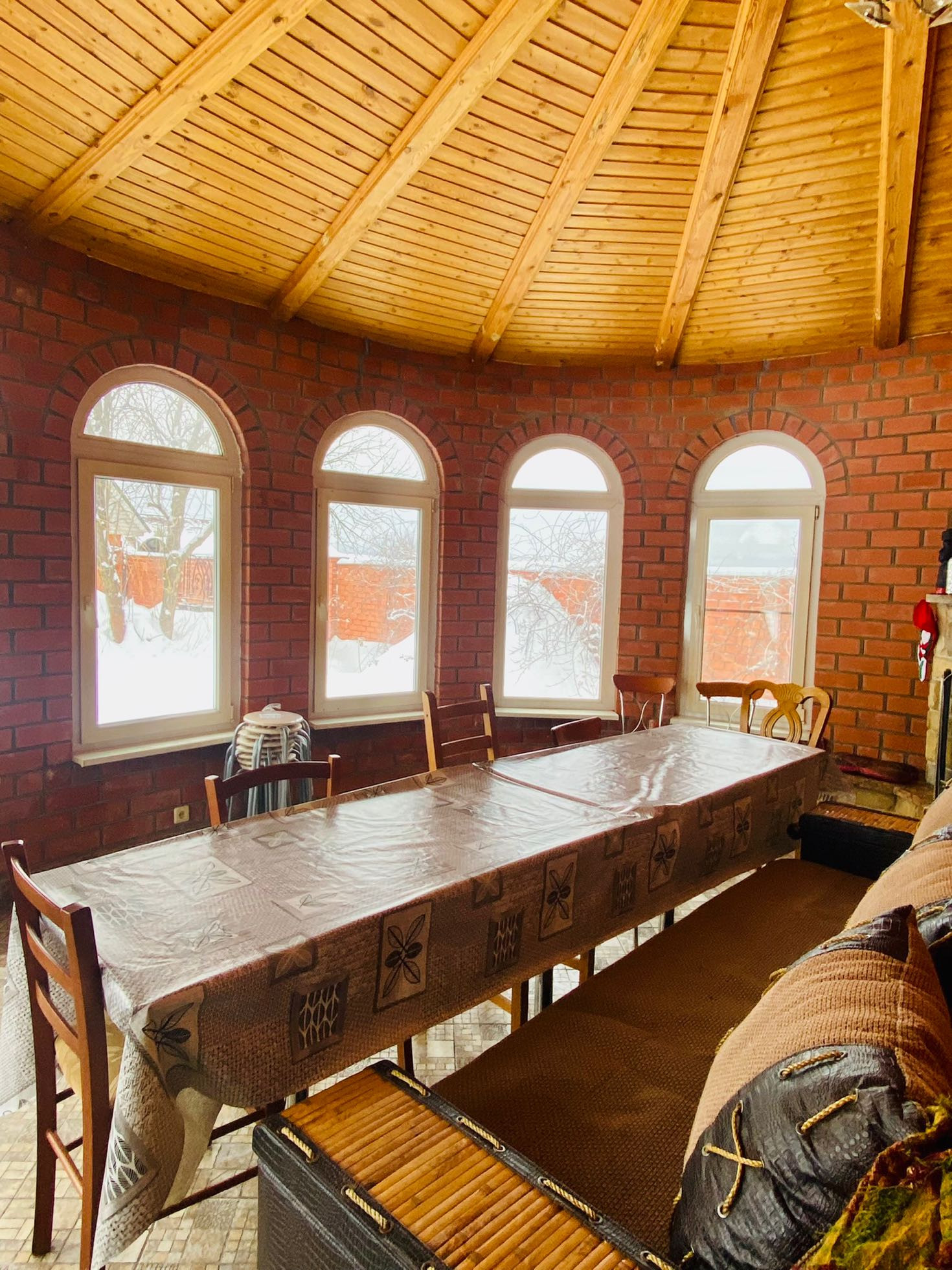 Дом1:Большая веранда с камином(построен под мангал+можно кальян)