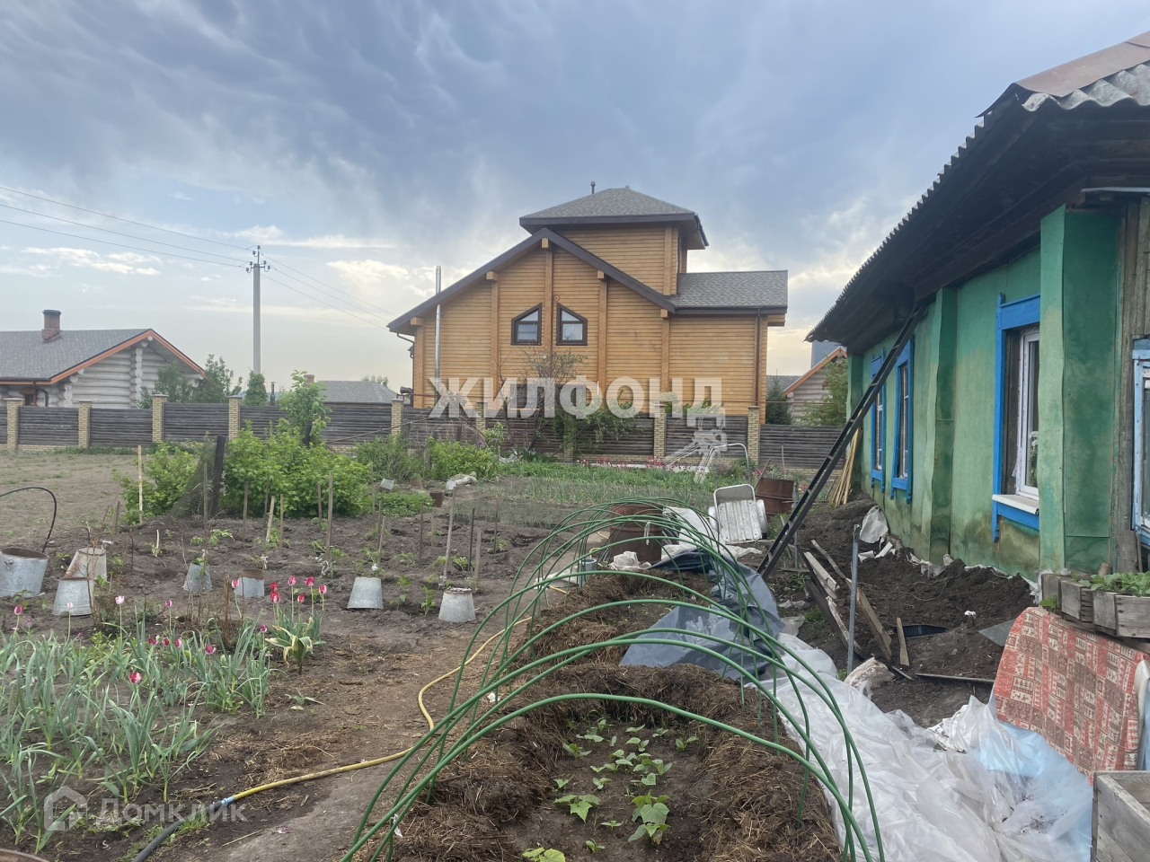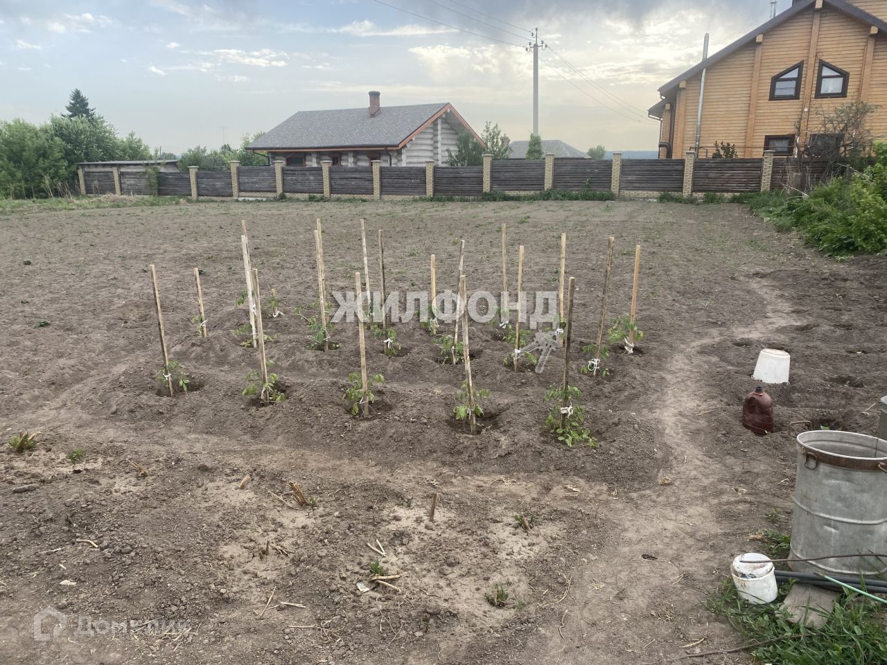 На участке находится баня, хоз.постройки ( под снос), два погреба, имеются все посадки. Есть возможность завести газ, так как магистраль проходит по соседнему участку.