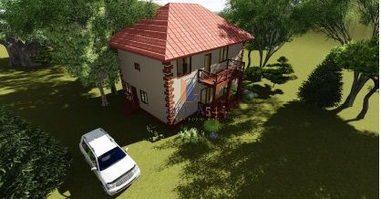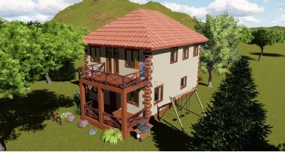 Фундамент ленточный ж/б, Стены из тепло блока, перекрытие первого этажа ж/б плиты, второго этажа дерево, крыша - четырёхскатная, эксплуатируемый чердак, покрытие - метало черепица.