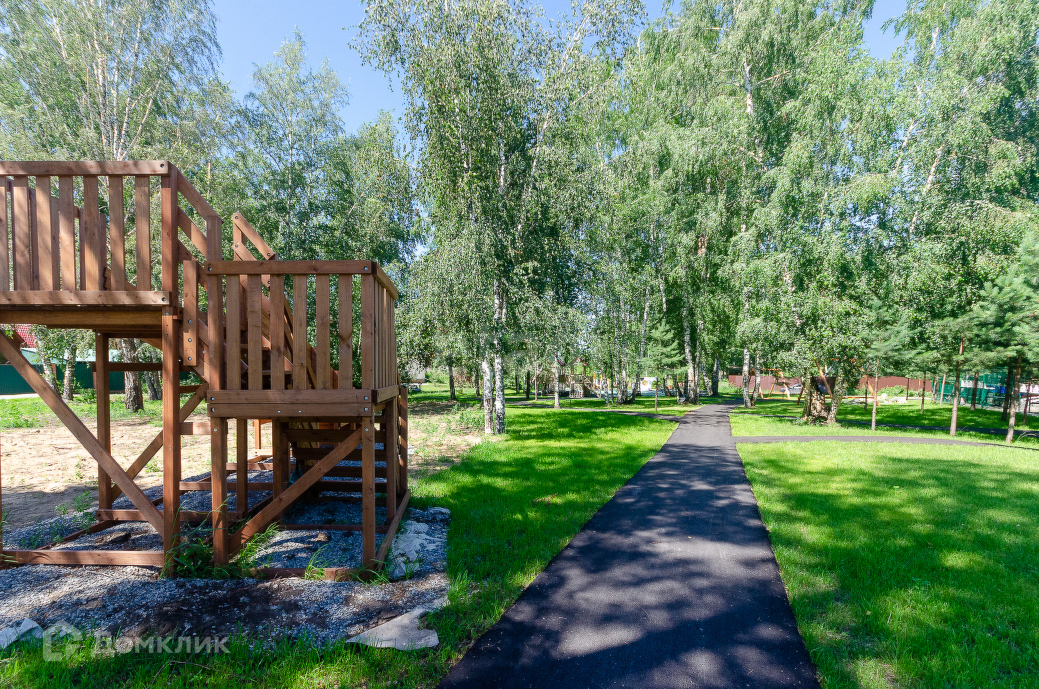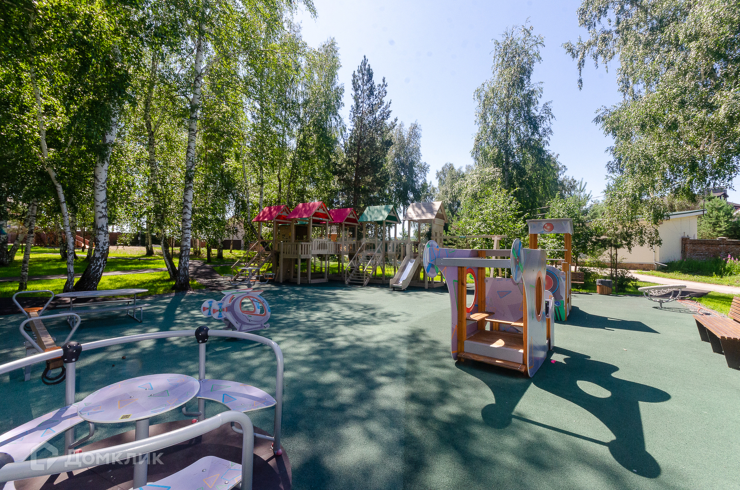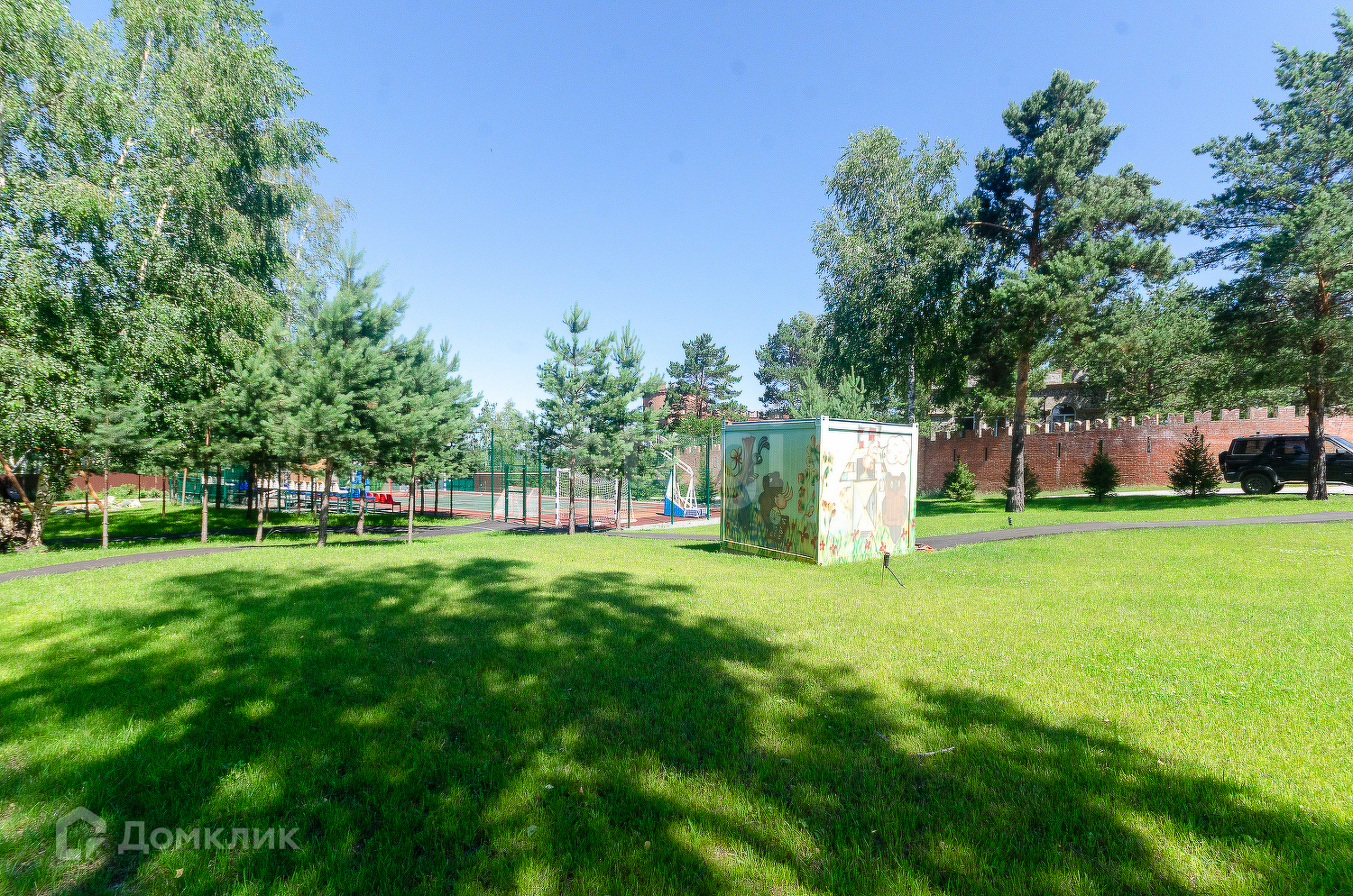 Территория закрытого формата, въезд только по пропускам, в клубе всего 38 участков. На территории клуба согласовано круговое движение. Несмотря на не большое количество участников клуба, территория обустроена собственной детской площадкой и спортивной.