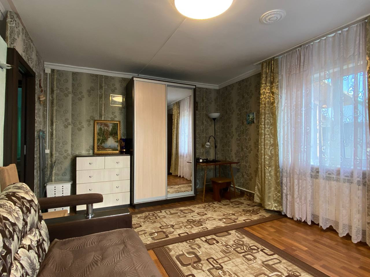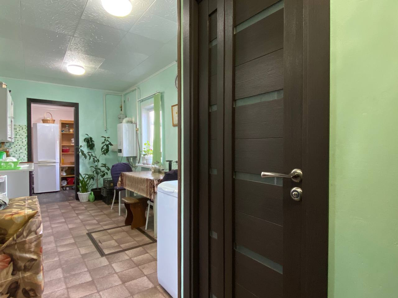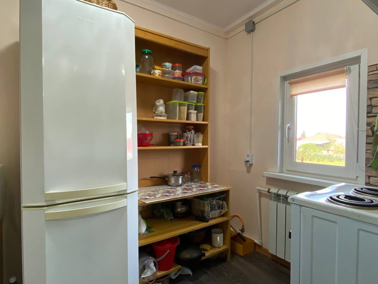 В доме сделан качественный ремонт, делали для себя. Имеется печь, которая до сих пор функционирует и в крайнем случае ей можно воспользоваться. Кухня достаточно просторная, кухонный гарнитур, как и часть мебели остается в квартире. Комнату с предчистовой отделкой можно оборудовать по вашему желанию, там же был запланирован лаз на второй этаж. Имеется место под душевую кабину или ванную комнату.
