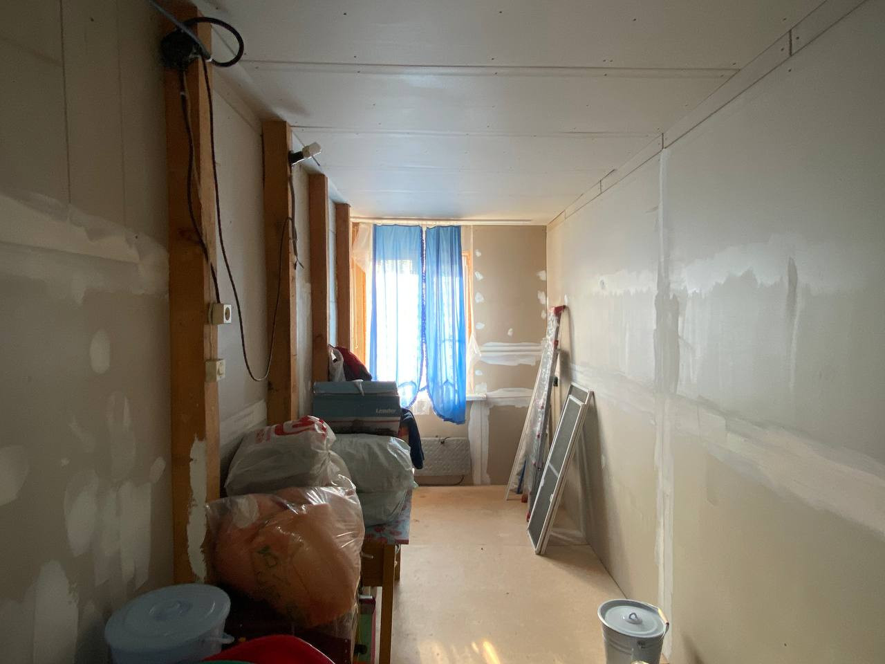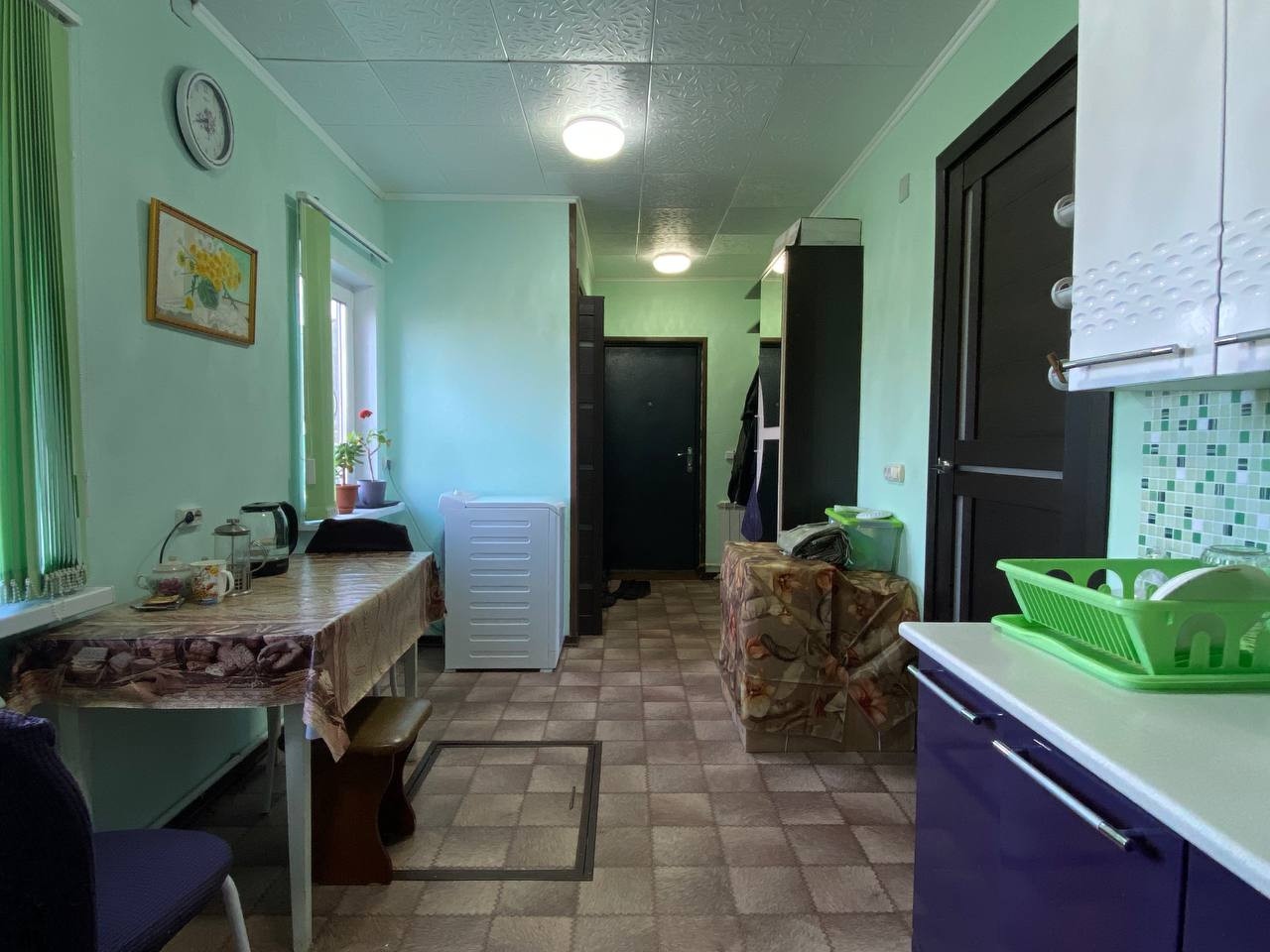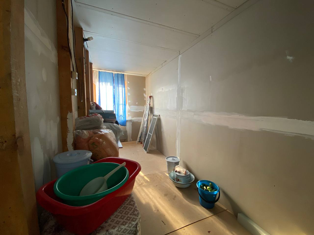 В доме сделан качественный ремонт, делали для себя. Имеется печь, которая до сих пор функционирует и в крайнем случае ей можно воспользоваться. Кухня достаточно просторная, кухонный гарнитур, как и часть мебели остается в квартире. Комнату с предчистовой отделкой можно оборудовать по вашему желанию, там же был запланирован лаз на второй этаж. Имеется место под душевую кабину или ванную комнату.