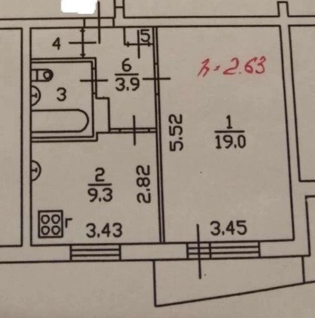 Общая площадь 39 м2