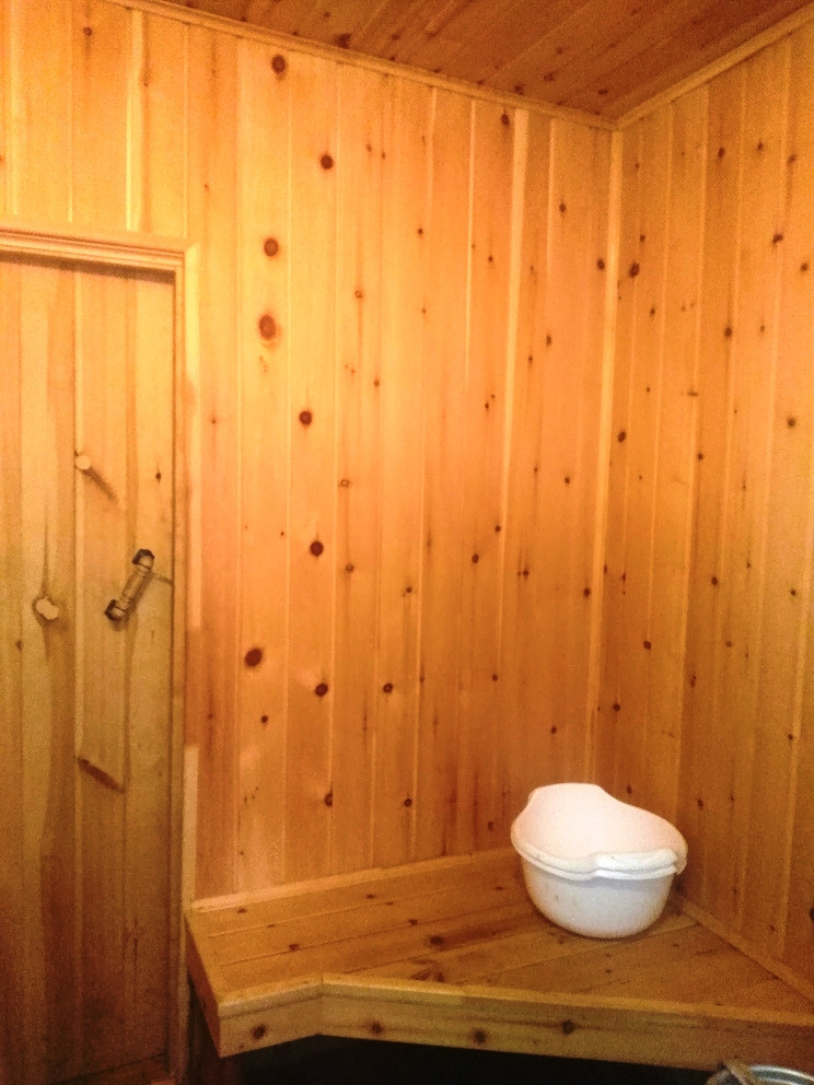 Для детей маленький домик, а для взрослых добротная уютная банька с гостевой комнатой и кухней.
