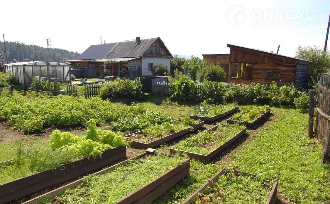 Большой земельный участок на котором построен гараж, баня, сарай, огород, теплица, парники, несколько ёмкостей под воду, подложка бод большой бассейн, десткая зона, много грядок, растут ягодные деревья, цветы.
