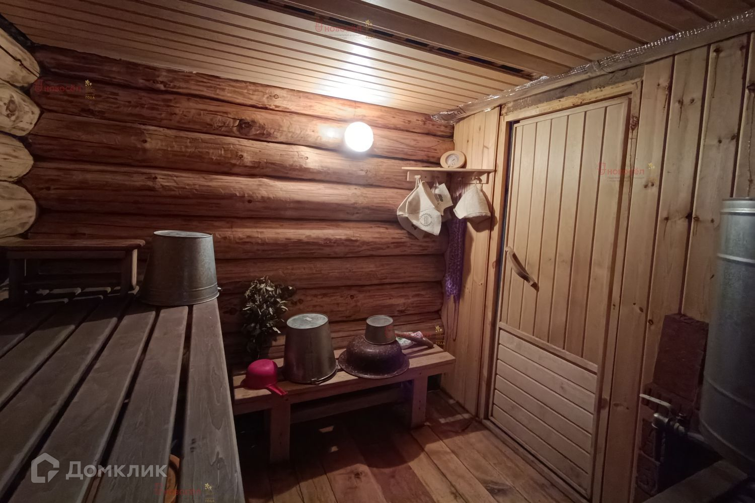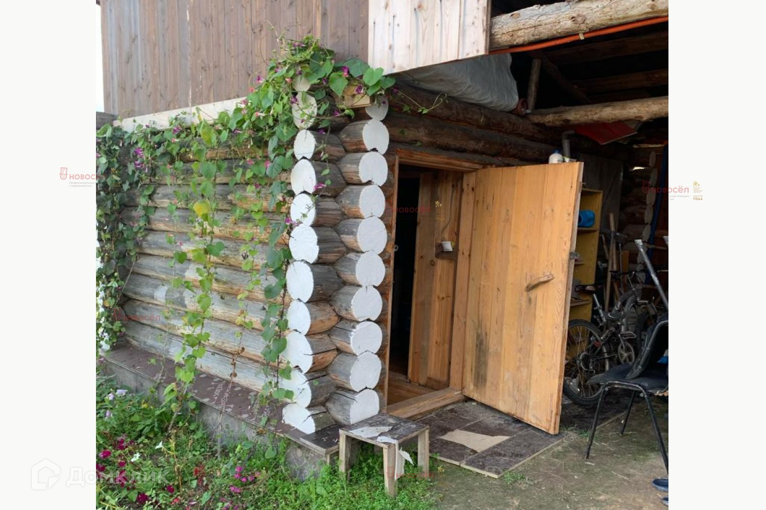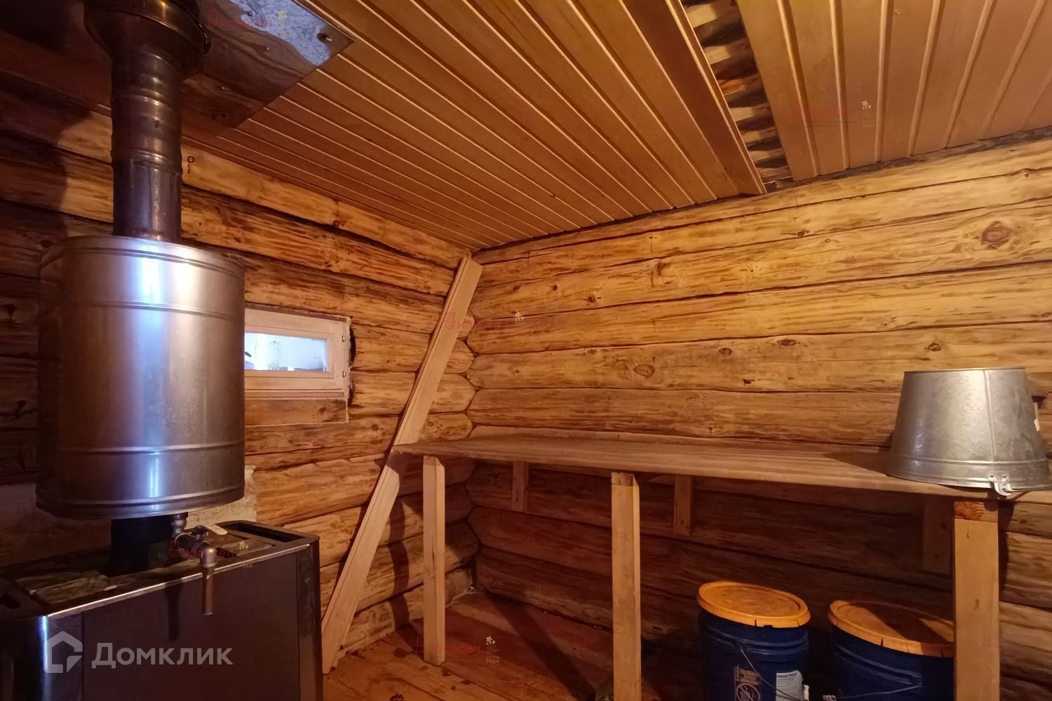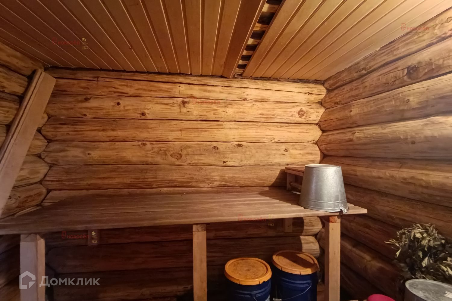 На участке построена баня из рубленного бревна зачищена и обработана изнутри водоотталкивающей пропиткой, железная печка с баком из нержавейки на 50 литров, сэндвич труба для дымохода, потолок и перегородка обшиты вагонкой, утепление потолка минеральной ватой, крыша на бане ондулин. Сарай построен также из брёвен. Есть уличный туалет.