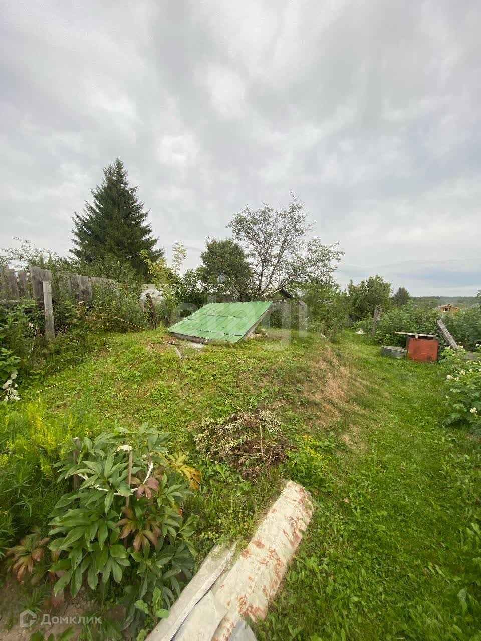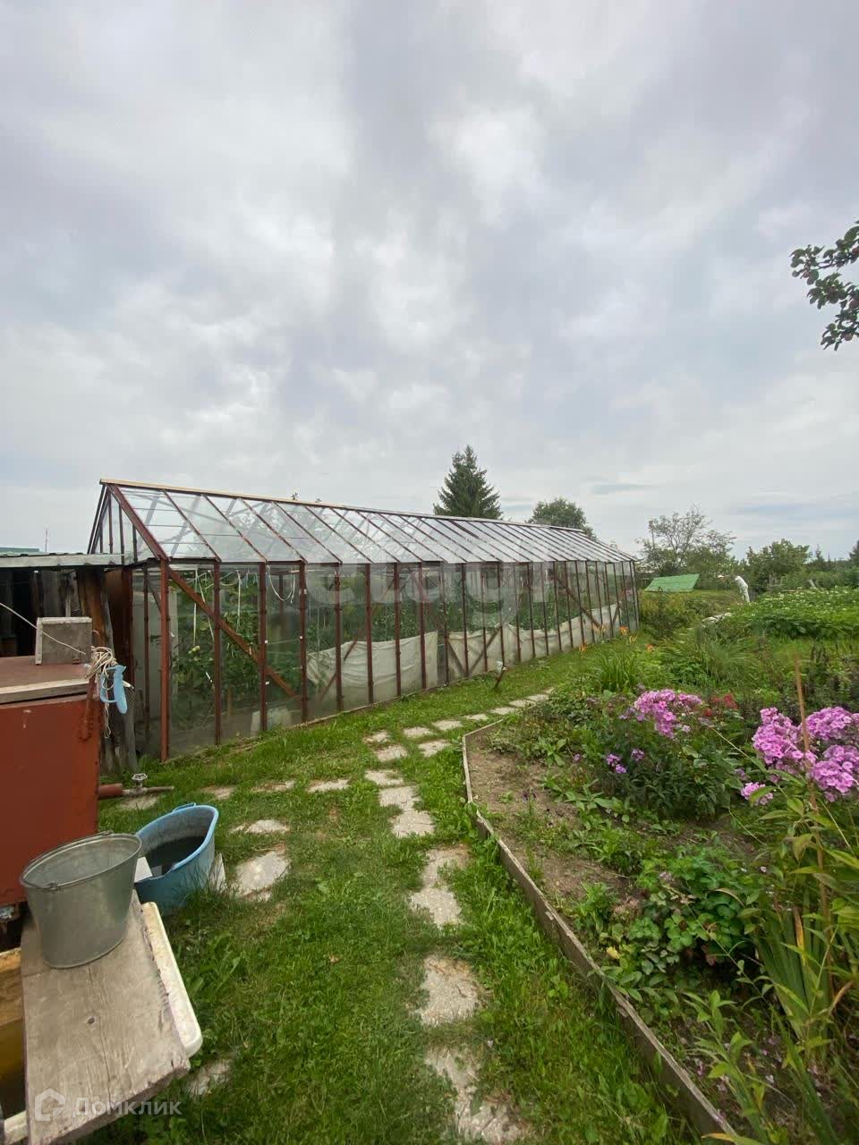 Участок очень ухоженный, правильной формы, есть большая застекленная теплица, сарай, овощная яма, плодовые насаждения - плодоносящие яблони, слива, ирга, кусты смородины, малина.