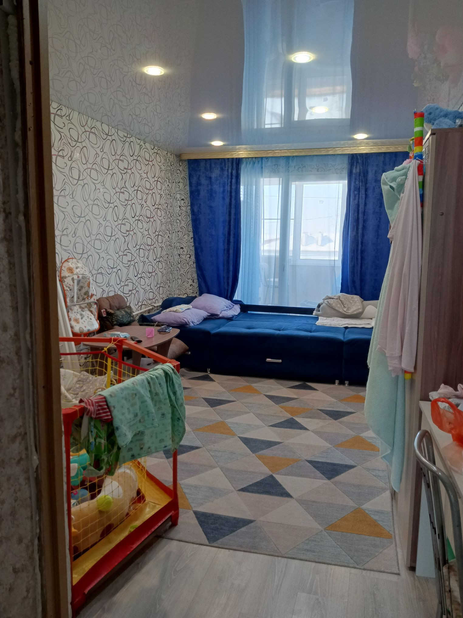 теплая квартира,панорамное окно в гостиной,ламинат, натяжные потолки везде. балкон остеклен. остается мебель -диван, мини диван, стенка, телевизор 55 диагональ, стиральная машина, посудомоечная машина, плитка, 2 холодильника, гарнитур, барная стойка, двухспальная кровать, 2 шкафа для одежды, комод, письменный стол.