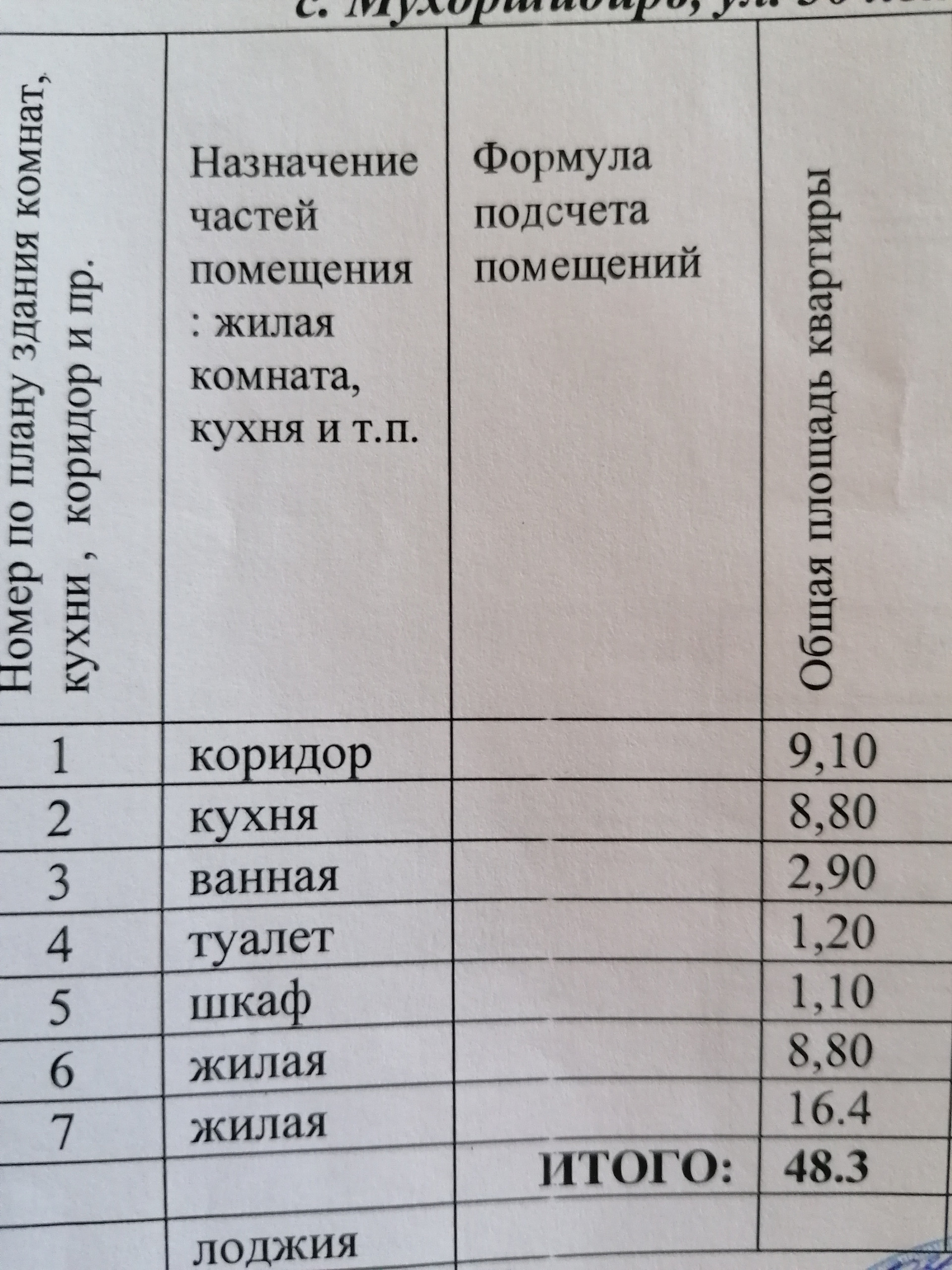 Общая площадь 48.3 м2