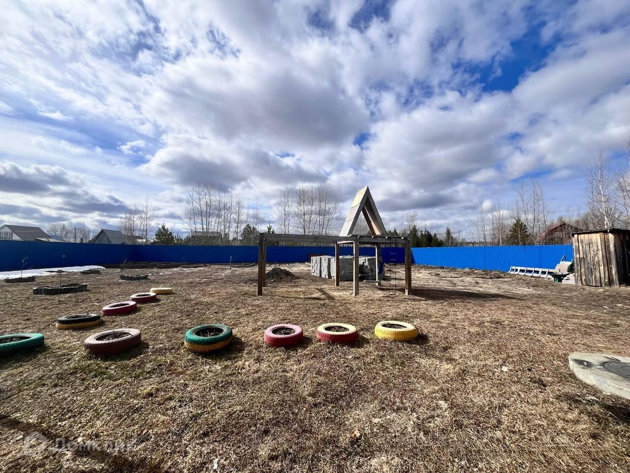 -На участке залит фундамент, который можно использовать под строительство гаража или бани.