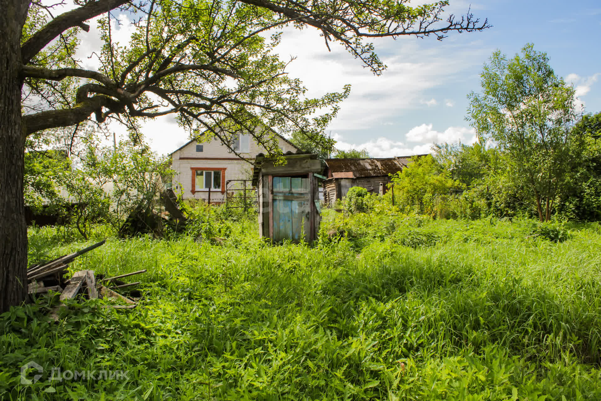 В дом заведены электричество и вода, канализация . Газ по границам участка. Дом требует ремонта. Участок 17 соток, не обработан. На участке есть сарай, плодовые деревья, цветы.