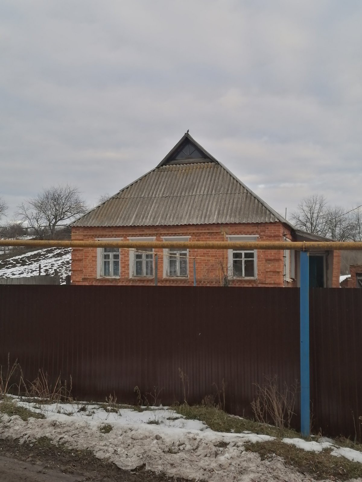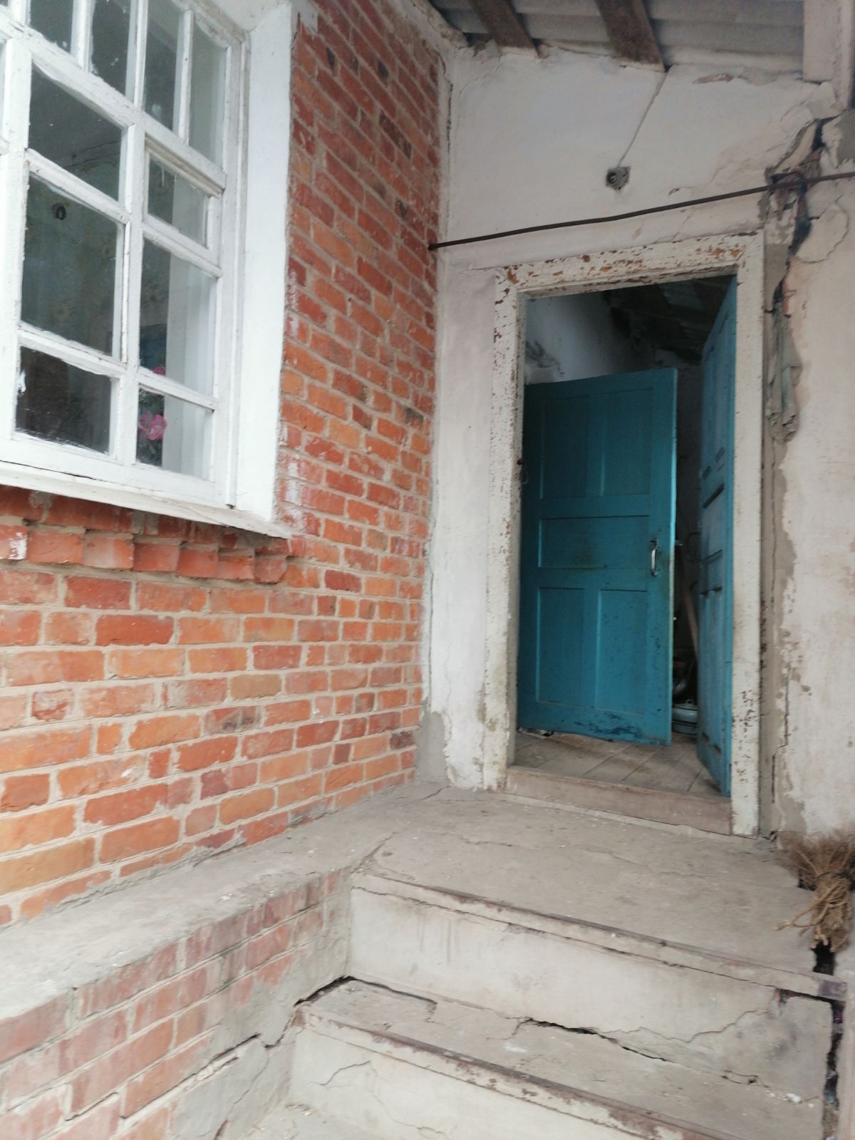 У дома высокий цоколь, крыша не течет, вода во дворе.