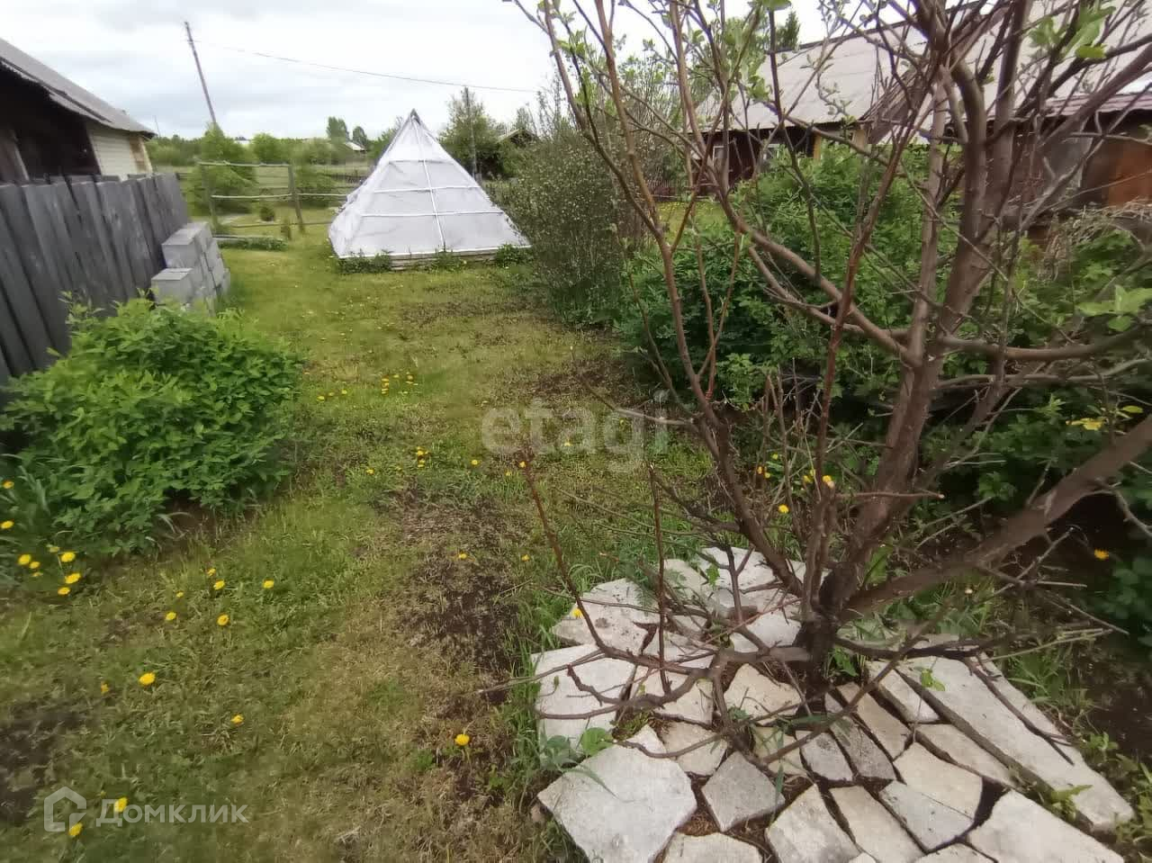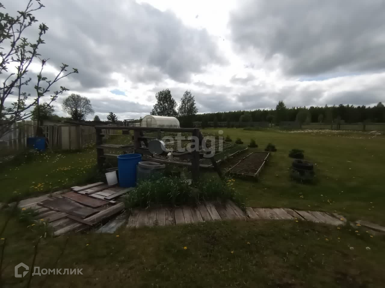 Участок и палисадник огорожены забором. С огорода выход на поле.