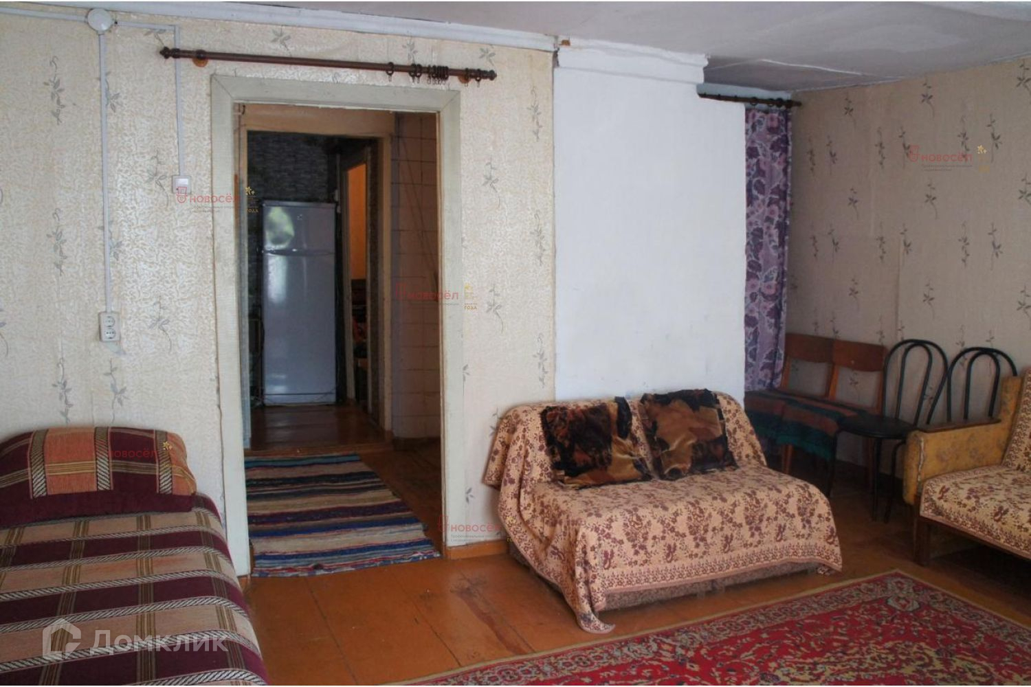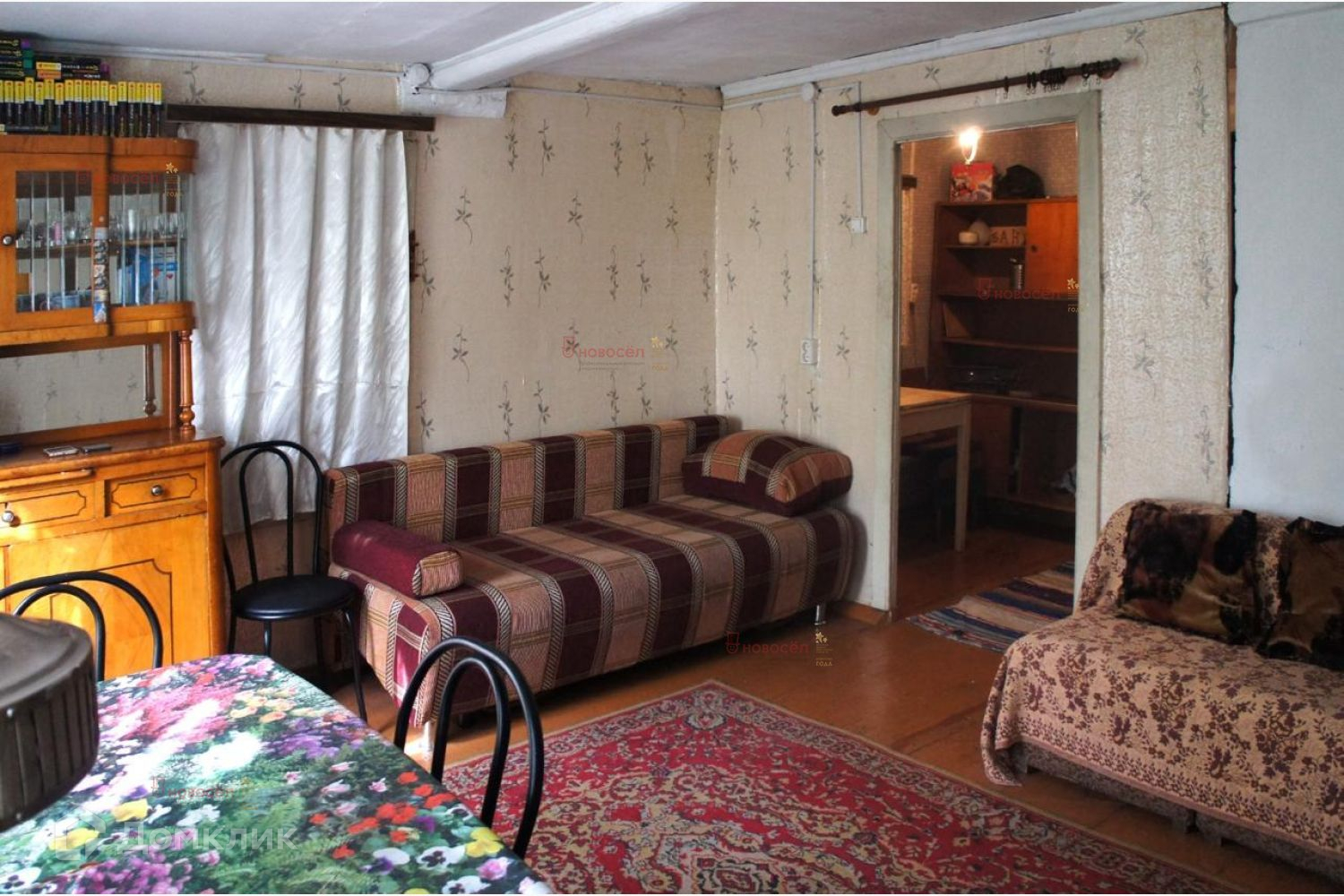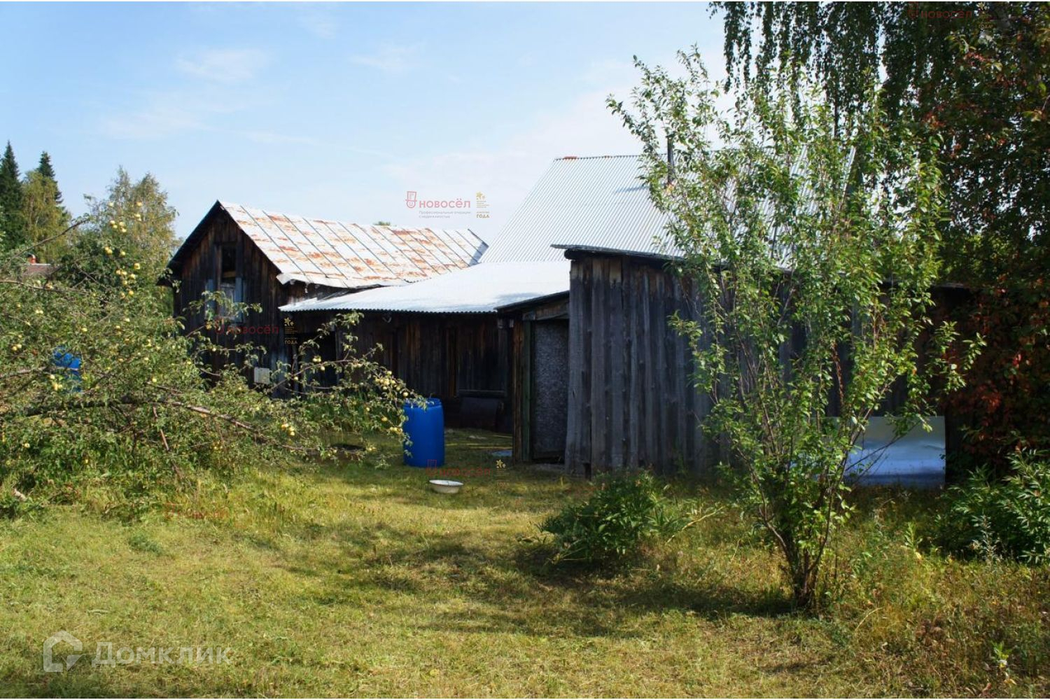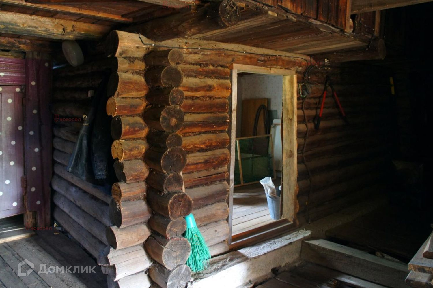 Объект № 185275. Продаётся земельный участок с половиной дома из бревна. Пригоден для проживания, вторая половина дома с входом с соседнего участка. В доме печное отопление. Две комнаты, кухня + хозяйственные пристрои и мансардный этаж.
