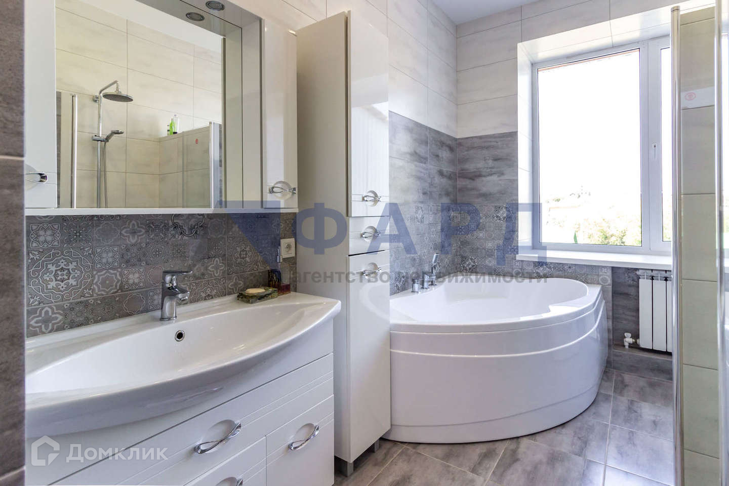 Отличная просторная ванная, в кафеле