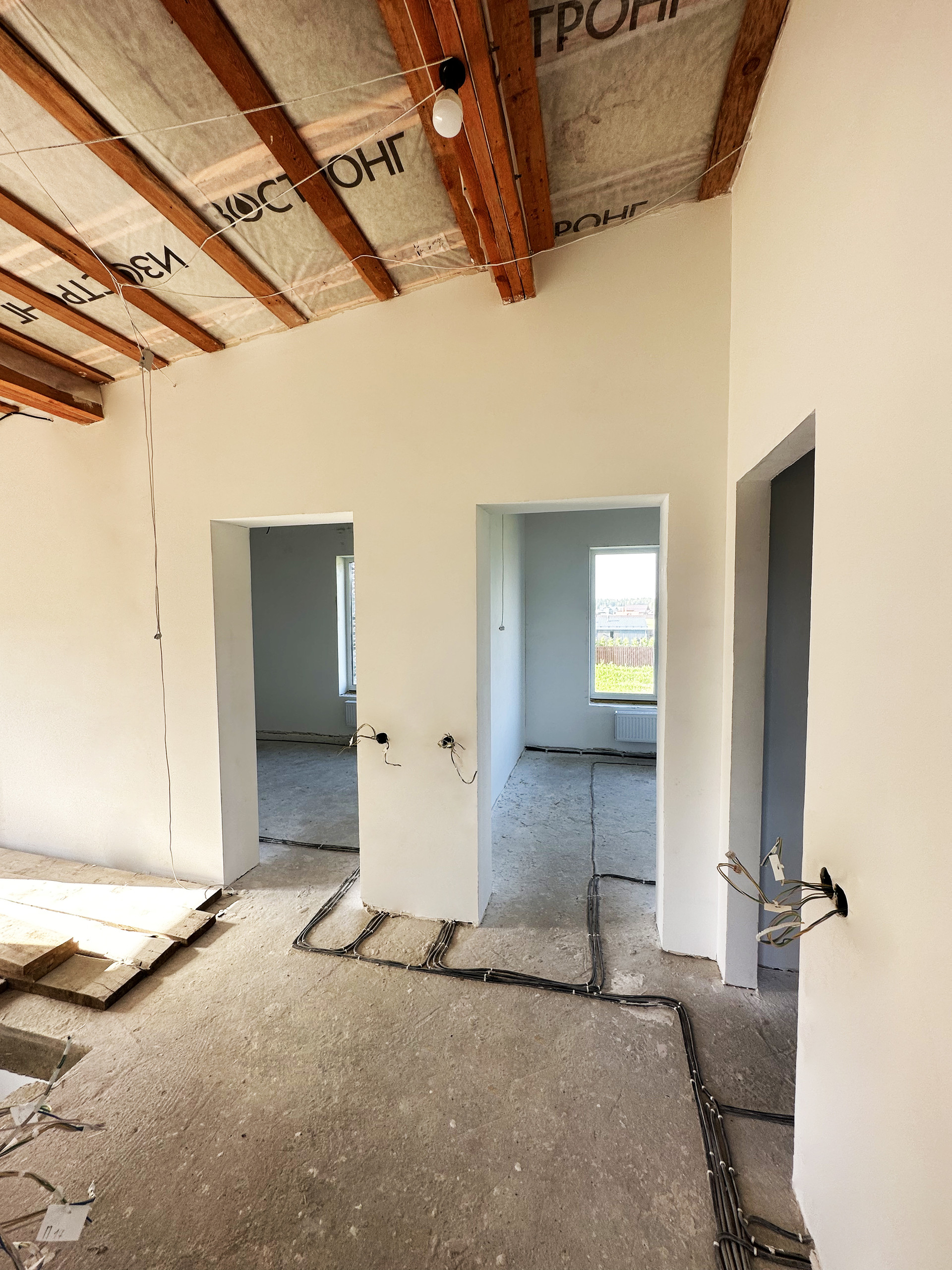 Отделка – White Box! Полностью выполнены все черновые работы: разведены все коммуникации, выровнены стены, выполнена чистовая стяжка пола и финишные потолки, все откосы. Полностью сделано отопление: разводка, котел и конвектора Royal Thermo.