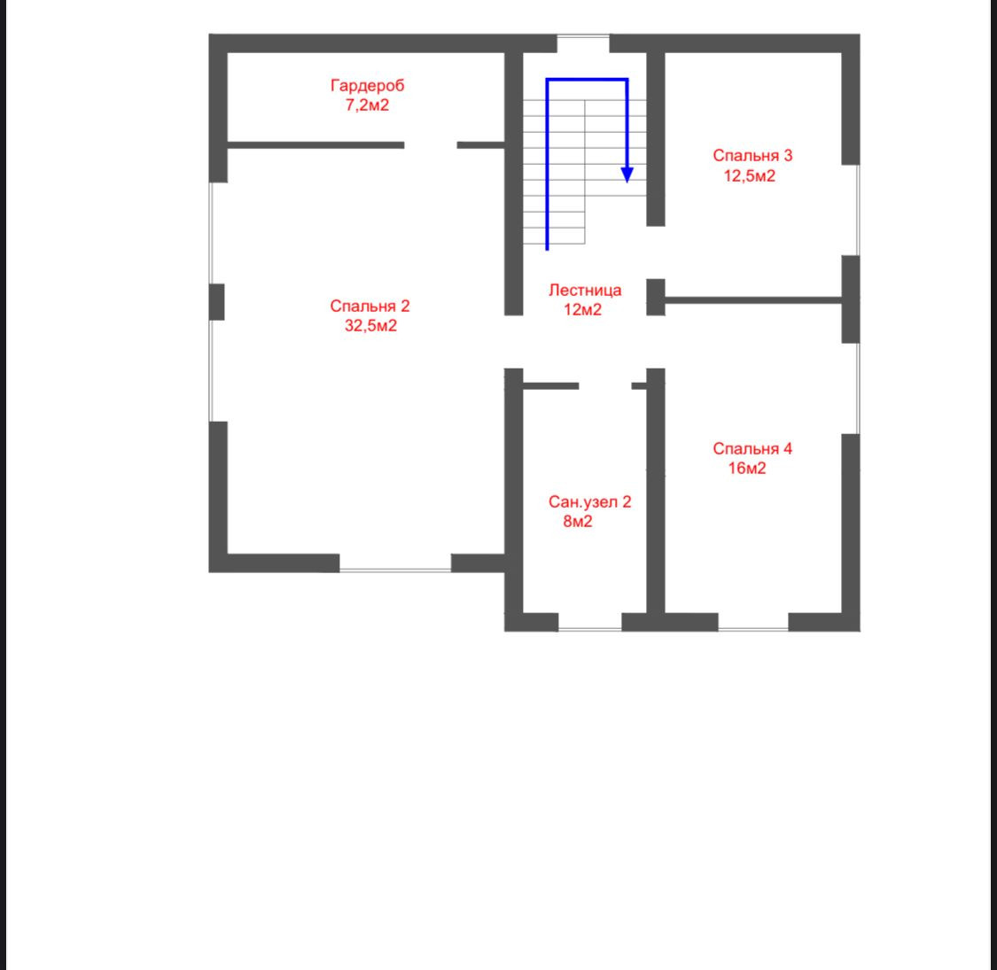 2 этаж: три спальни с гардеробными и санузлом.