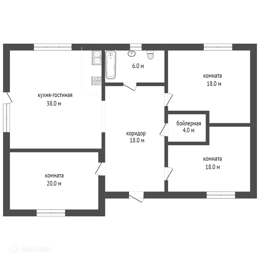 Дом состоящий из кухни-гостинной с выходом на просторную террасу, 3 спален, прихожей и совмещенного санузла.