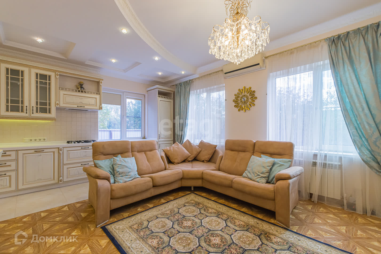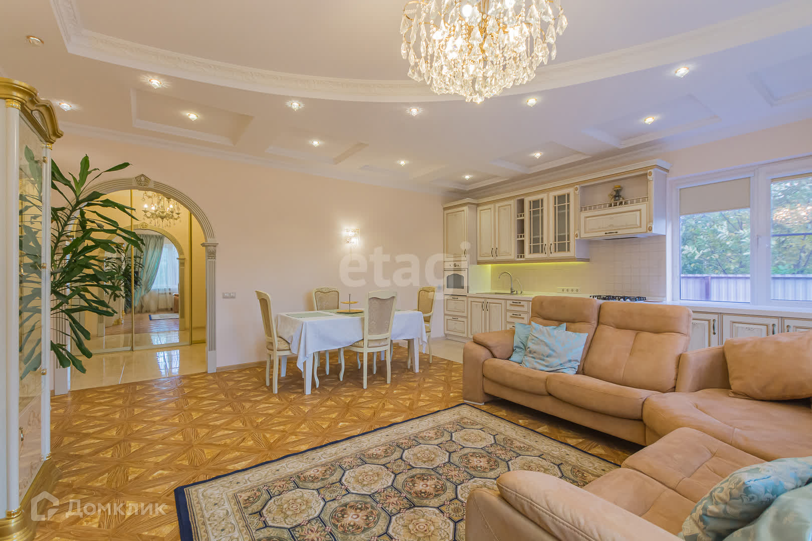 кухня-гостинная. Кухня со встроенной техникой (духовой шкаф, варочная поверхность, вытяжка, посудомоечная машина, холодильник), кабинет, гардеробная, корридор, холл, котельная, санузел с окном душевая, ванная (с телевизором).