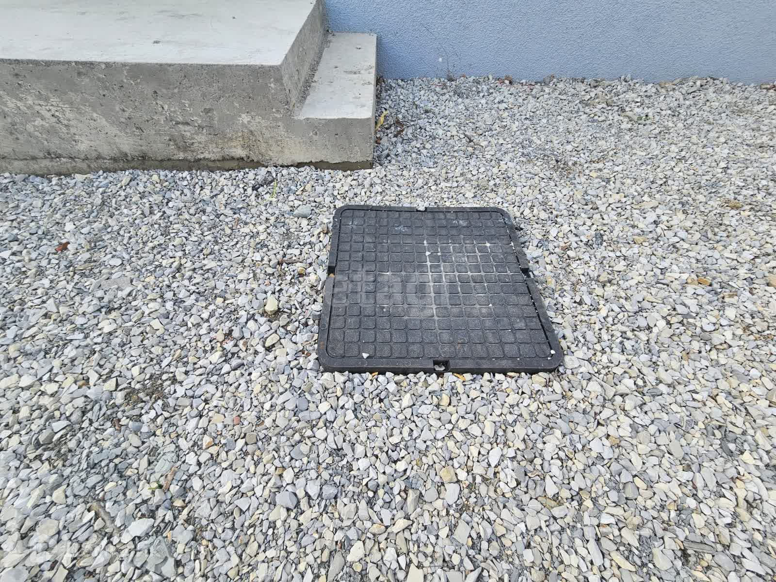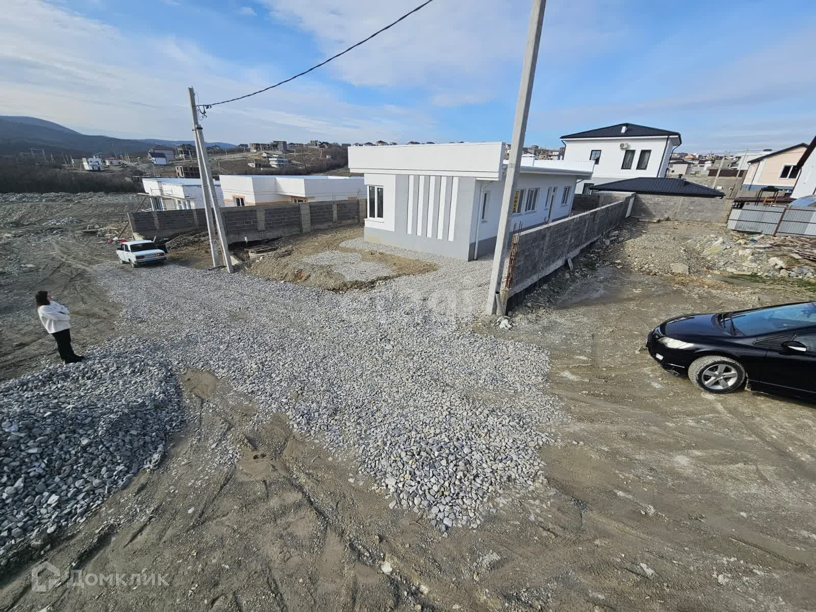 Подьезд к дому - насыпной щебень. Участок ровный 405 кв. м. Есть скважина и септик, столб с электричеством около участка.