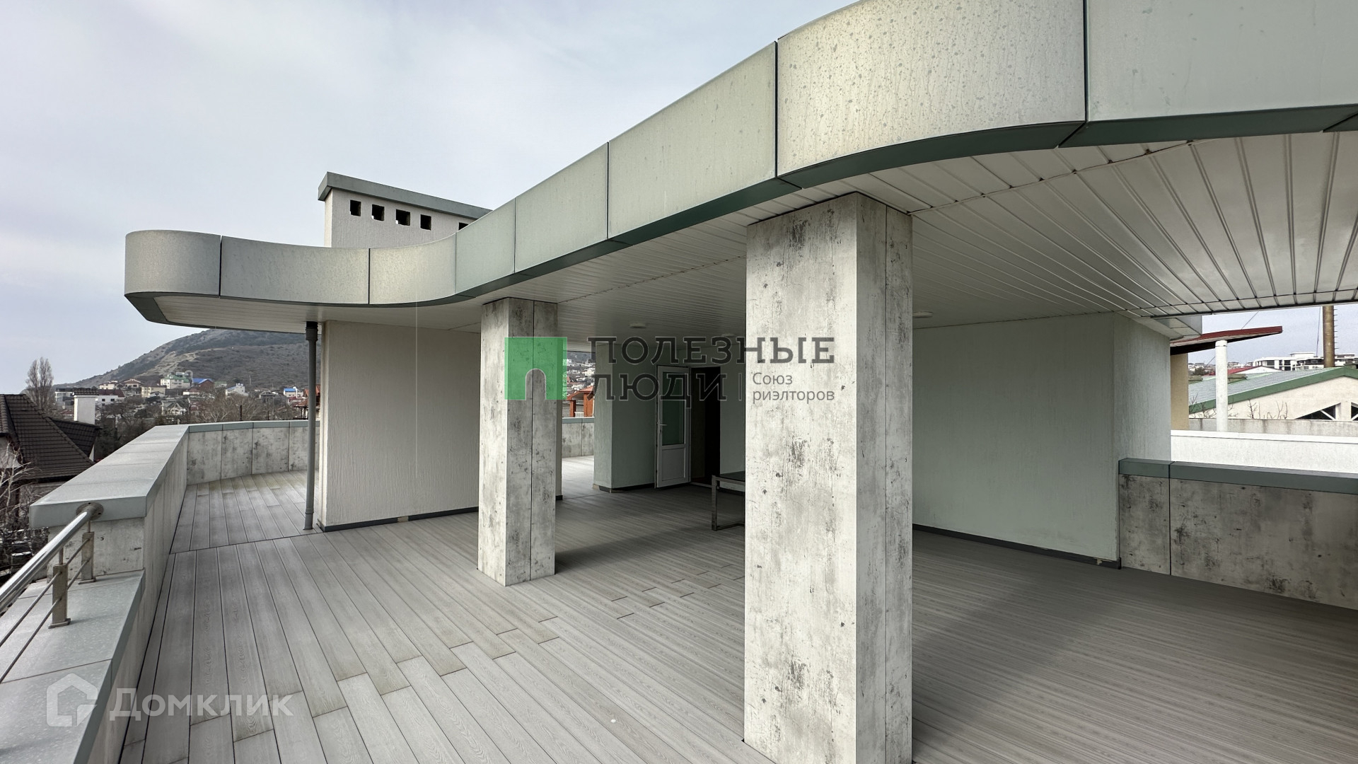 Кроме того, на эксплуатируемой кровле находится еще одно помещение свободного назначения. Стены обшиты композитными материалами, полы покрыты террасной доской из западной сосны.