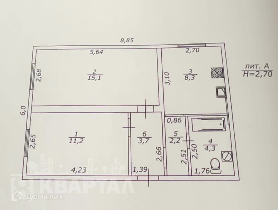 Общая площадь 44.8 м2