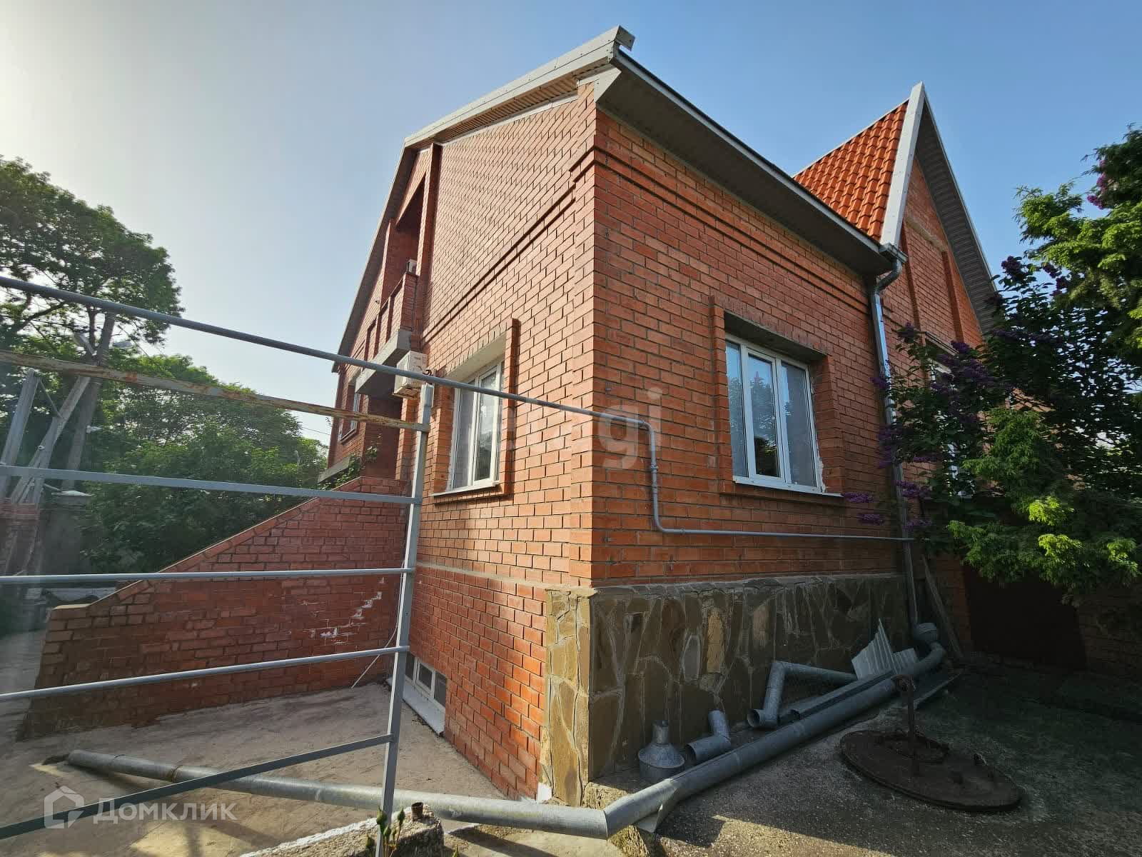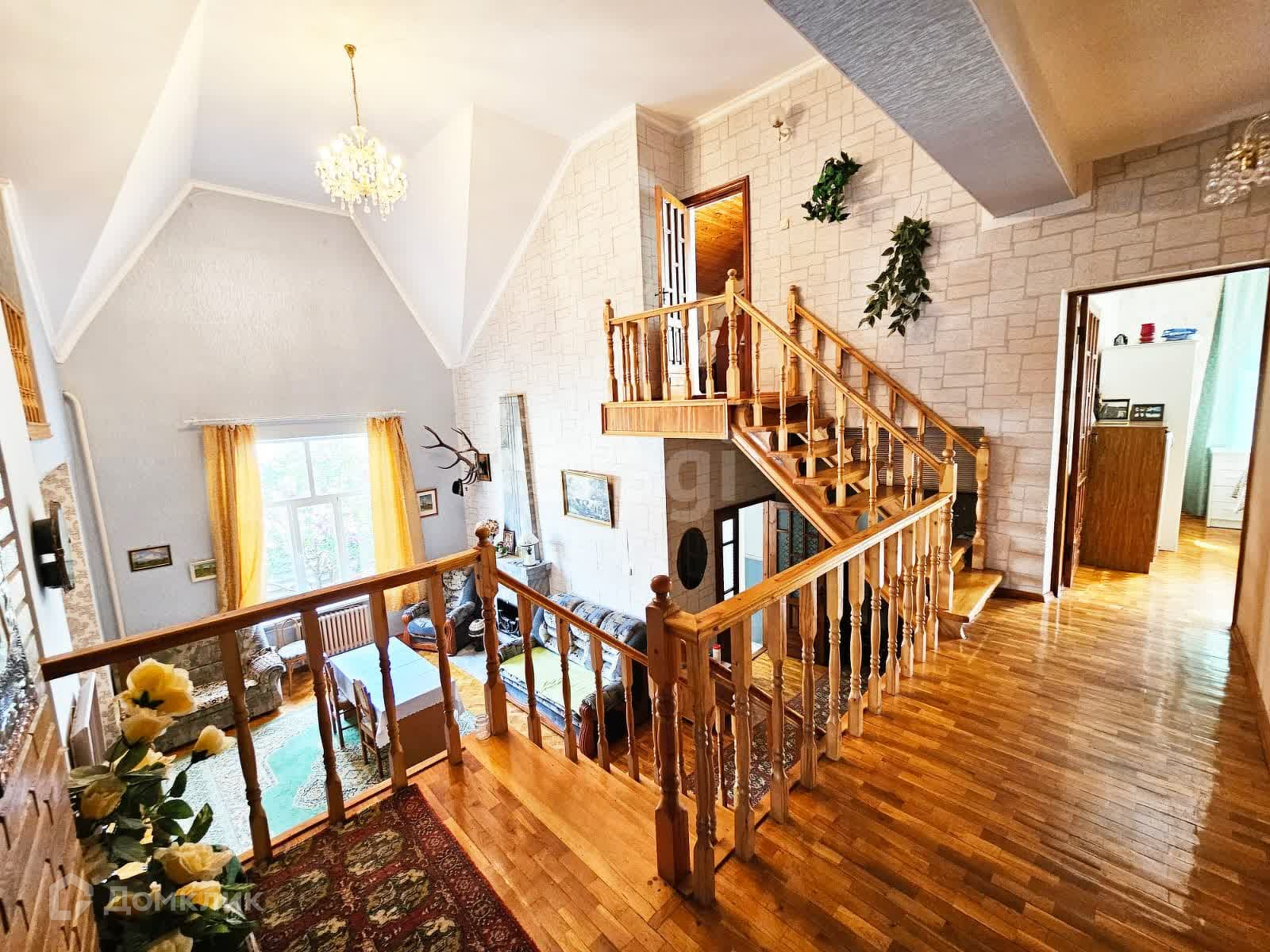 Дом из керамзитового блока, облицован кирпичом. В доме большая гостиная со вторым светом и камином, 4 спальни, просторная кухня-столовая‚ два раздельных санузла, полноценный цокольный этаж с гаражом. Полы из натурального паркета. Отопление дома от газового котла, газ сетевой, вода из своей скважины. Участок ухоженный, имеются дополнительные хозяйственные постройки, высажены плодоносящие фруктовые деревья.
