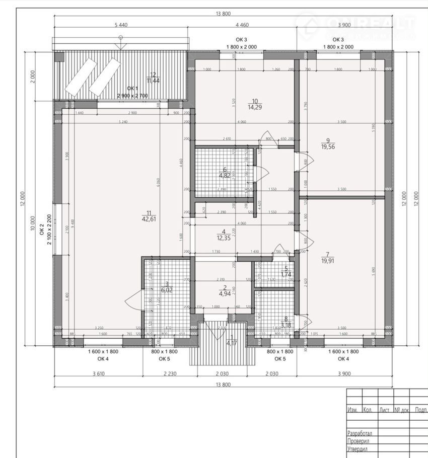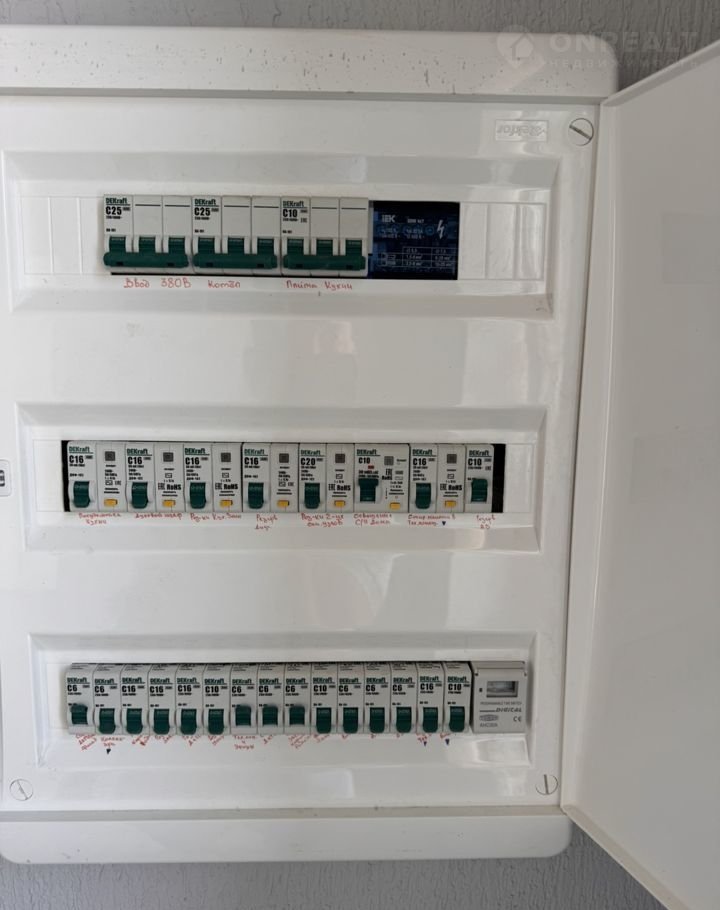 Выполнена разводка горячей и холодной воды, канализации. Разводка электрики и интернет-кабеля, собран распределительный щит. Установлена фасадная подсветка, также встроенные светильники смонтированы в потолке террасы и крыльца. Камеры видеонаблюдения.