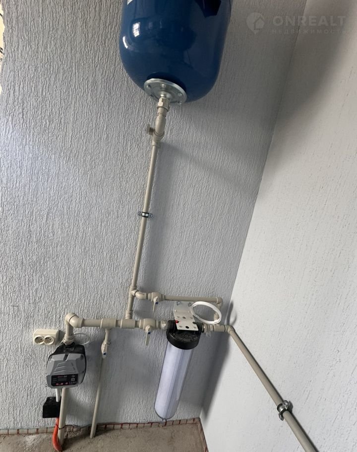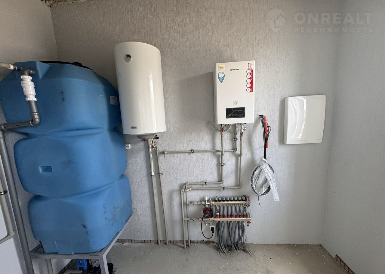 насосная станция, итальянская автоматика для насоса скважины, гидроаккамулятор, коллектор теплого пола, фильтр первичной очистки воды, также сделана подготовка под установку полноценной системы фильтрации. Стены оштукатурены «под обои», стяжка пола. Теплый пол, в спальнях установлены радиаторы отопления.