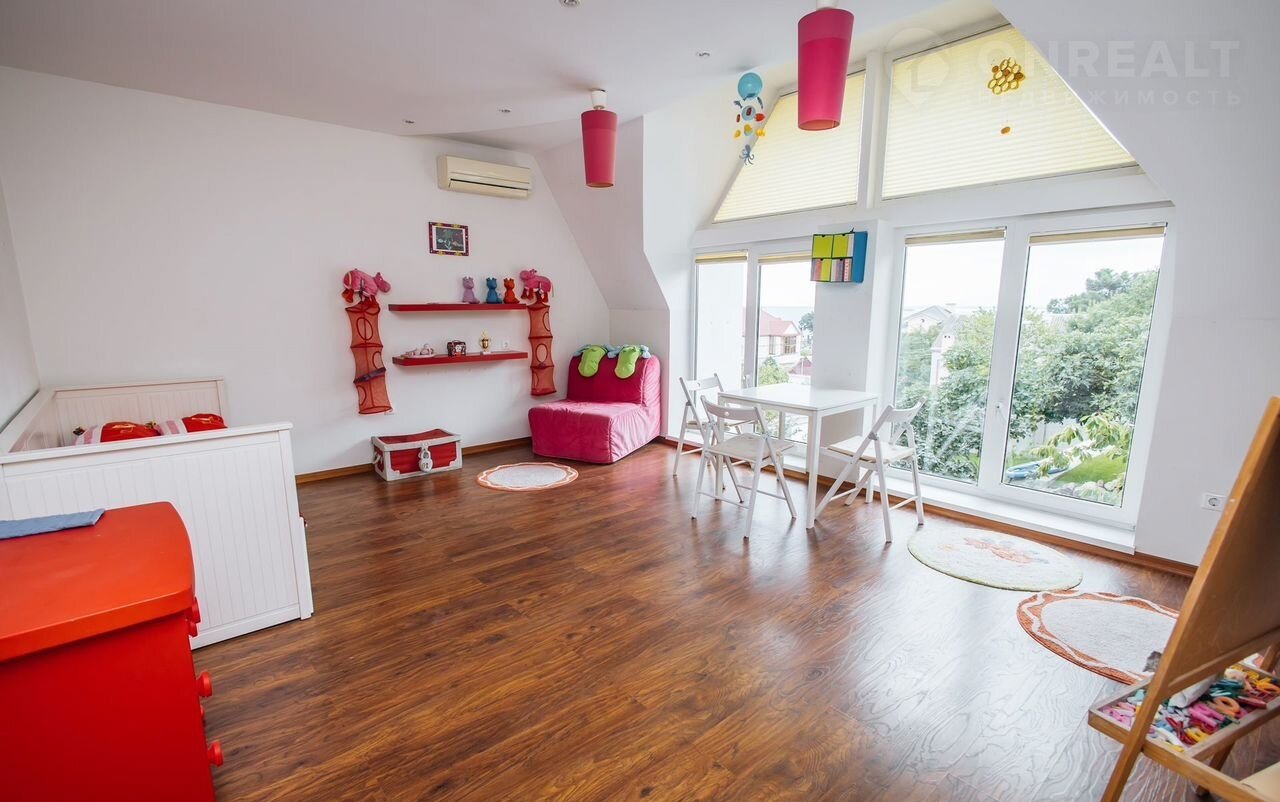 В доме 6 спален, 4 санузла, кухня-гостиная, зона отдыха, гардеробная, 3 видовых балкона на море и гаража. Установлено видеонаблюдение, пожарная сигнализация и сплит системы в каждом помещении.