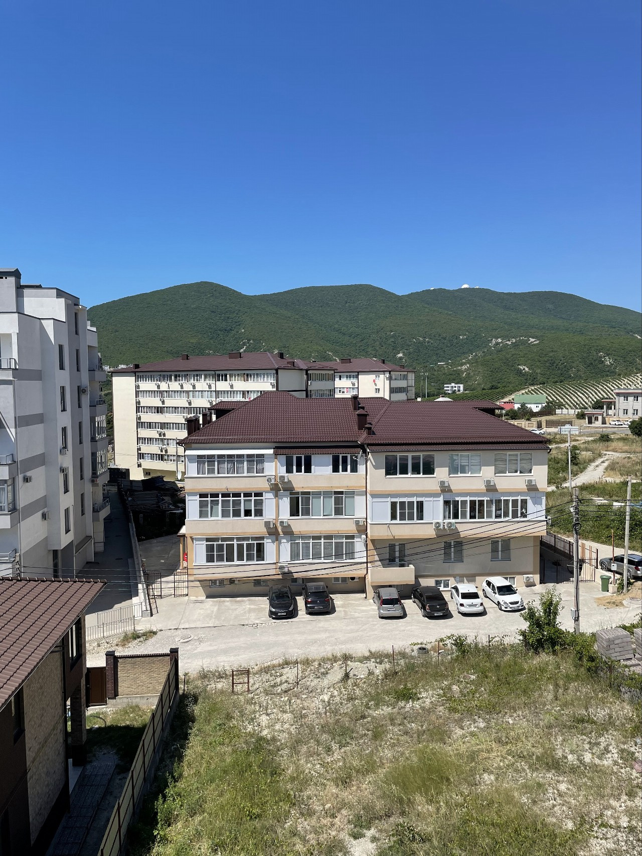 Сама квартира расположена на третьем этаже, откуда открывается отличный вид на море и горы.