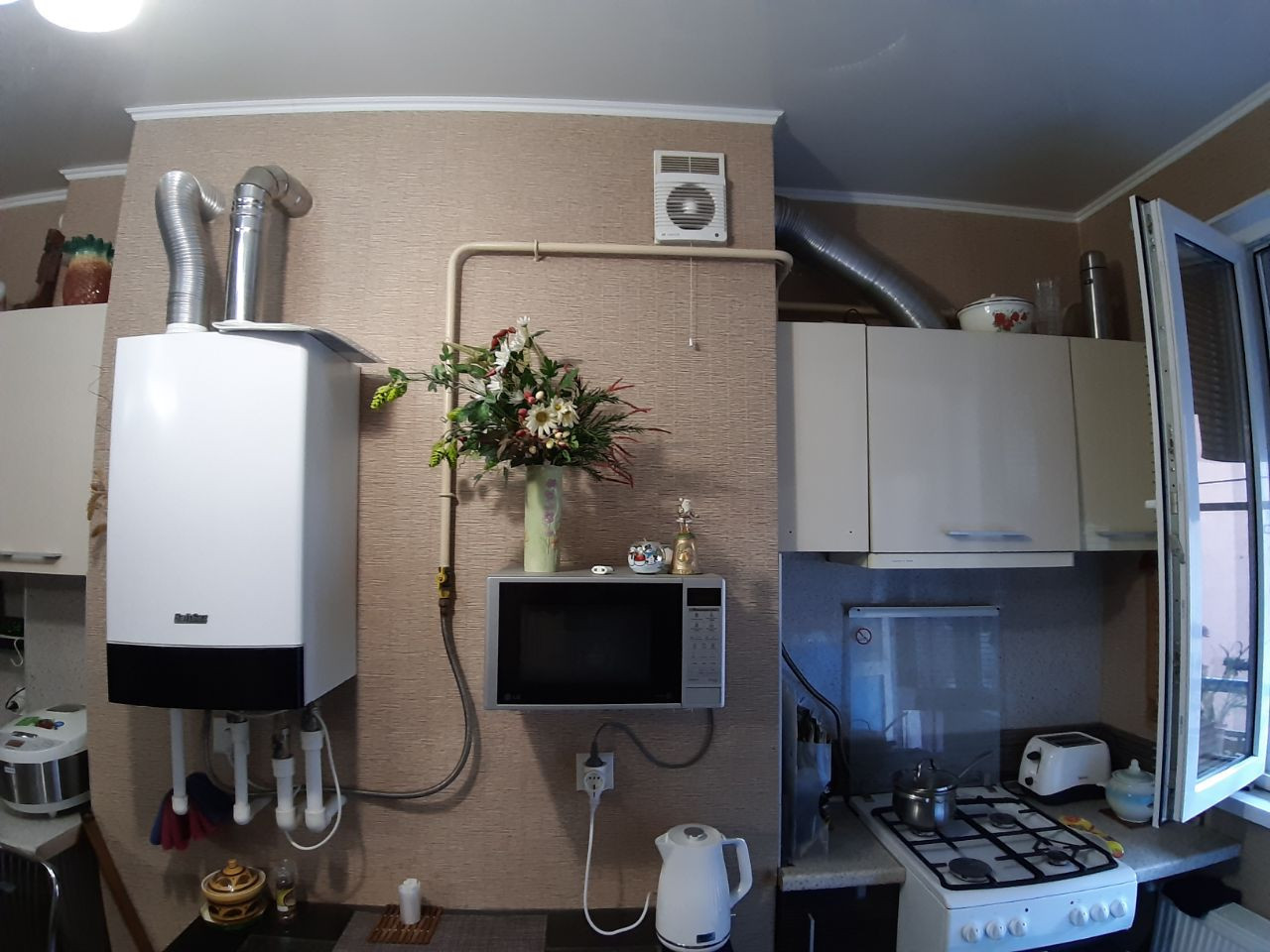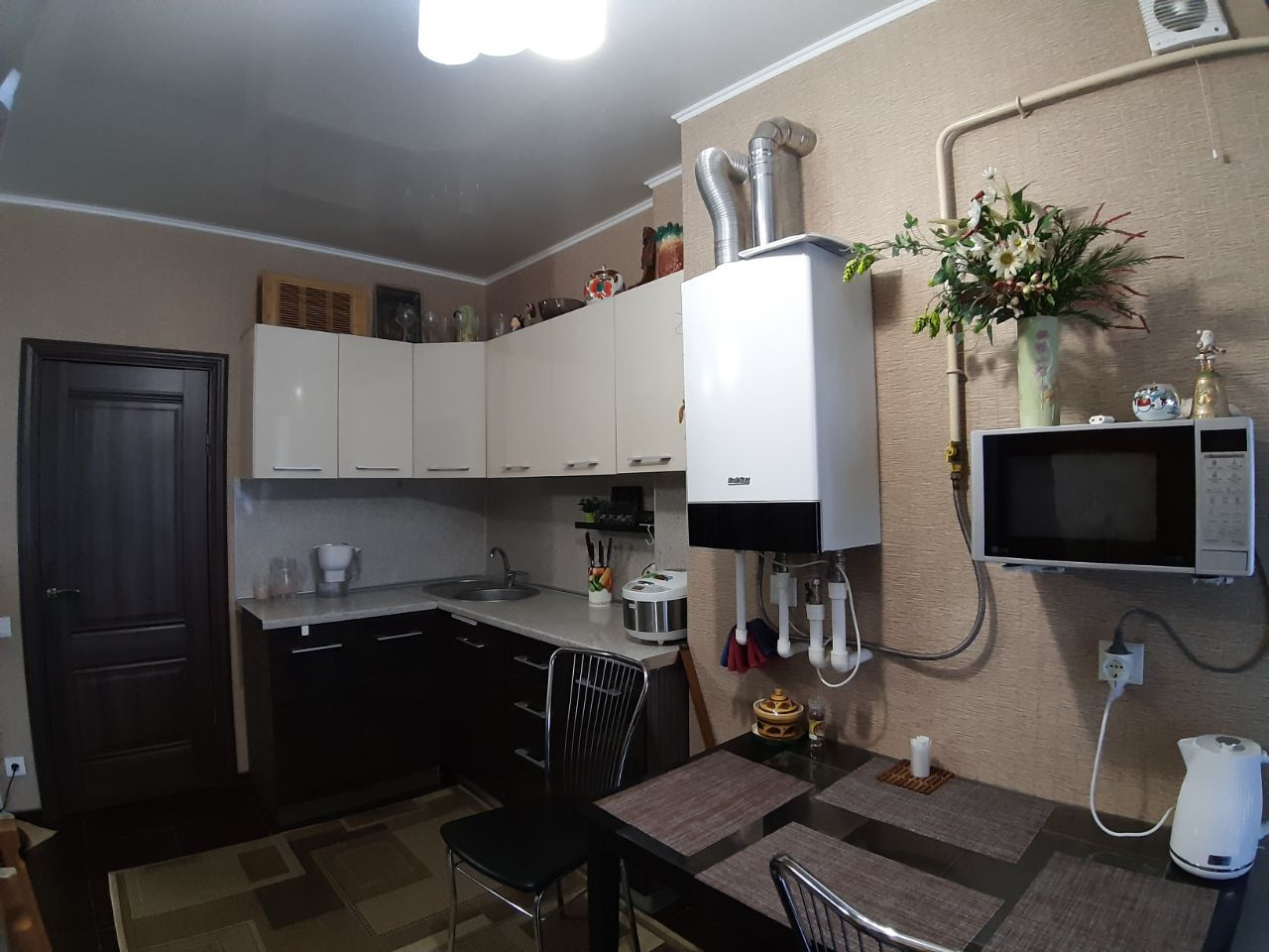 Малоквартирный монолитный дом с индивидуальным автономным газовым  отоплением.  Коммунальные платежи за отопление  за счет собственного двухконтурного котла низкие. Общая площадь квартиры 40 кв.м ,  кухня 12 кв.м.