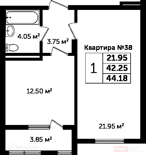 Общая площадь 44.18 м2