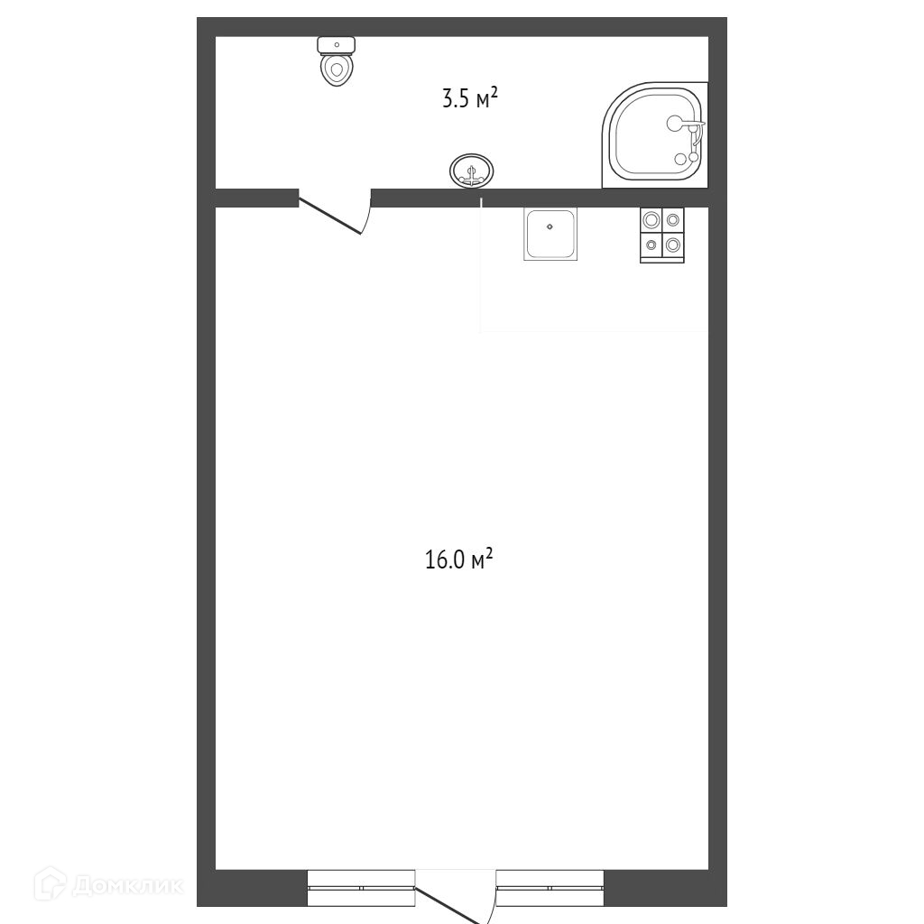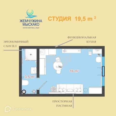 Общая площадь 19.5 м2