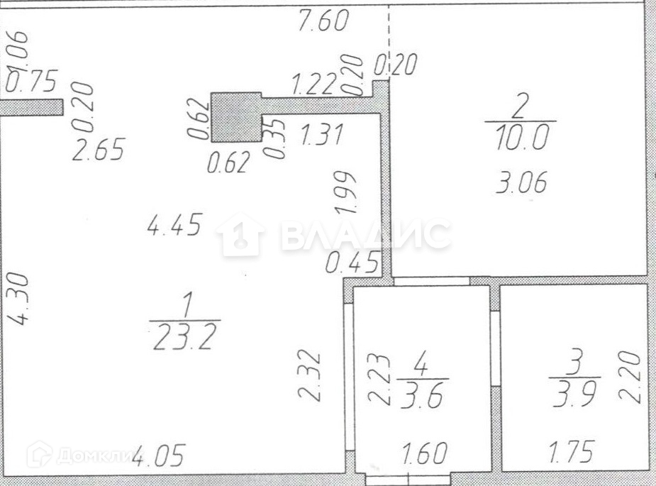 Жилая площадь 23.2 м2