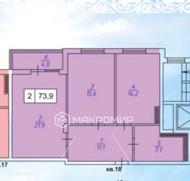 Общая площадь 74 м2