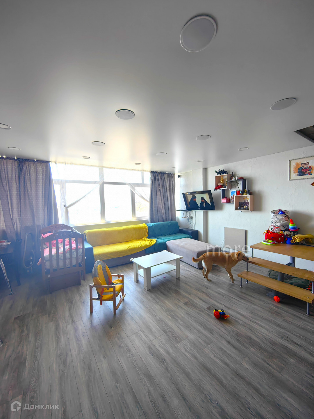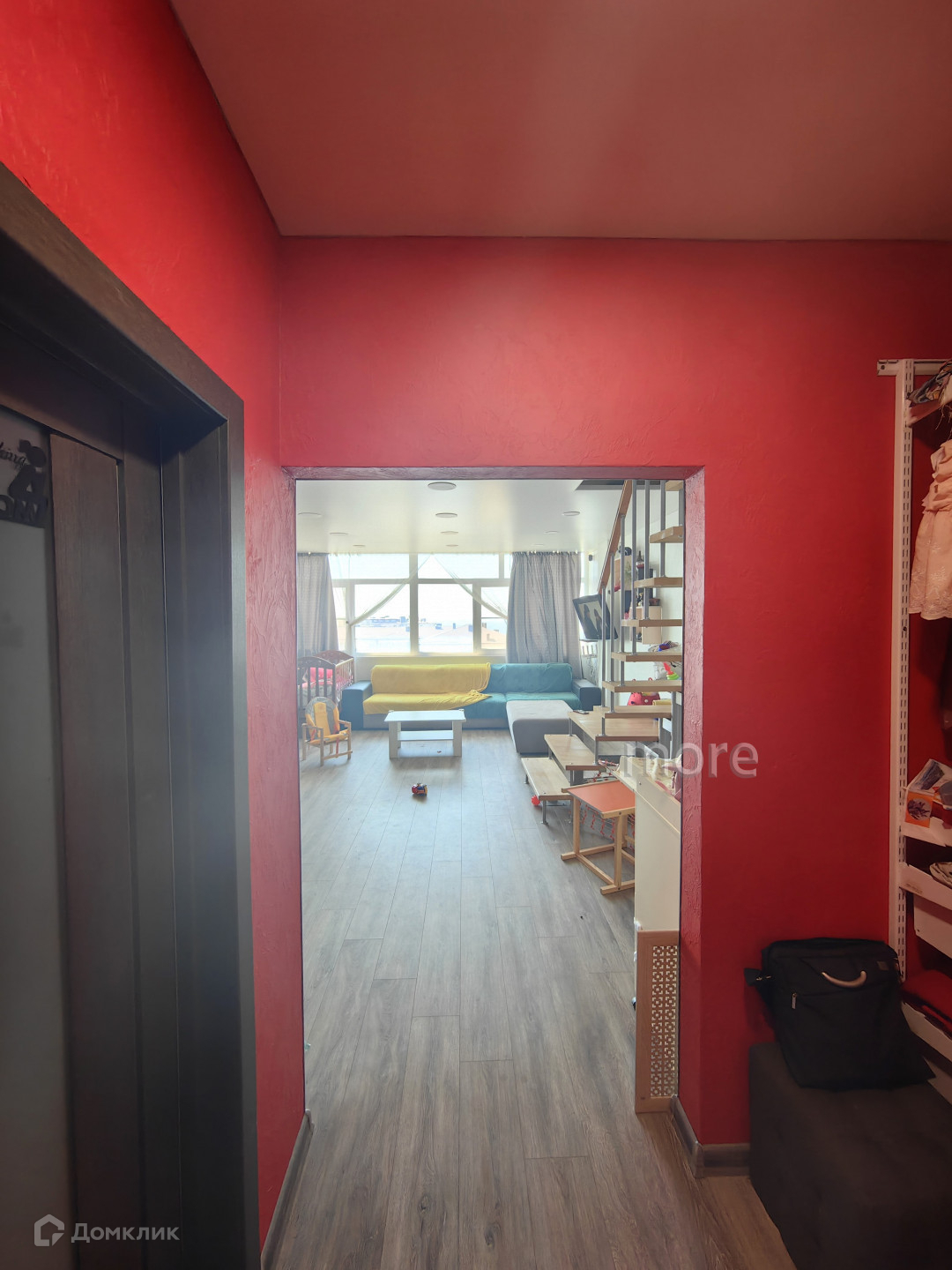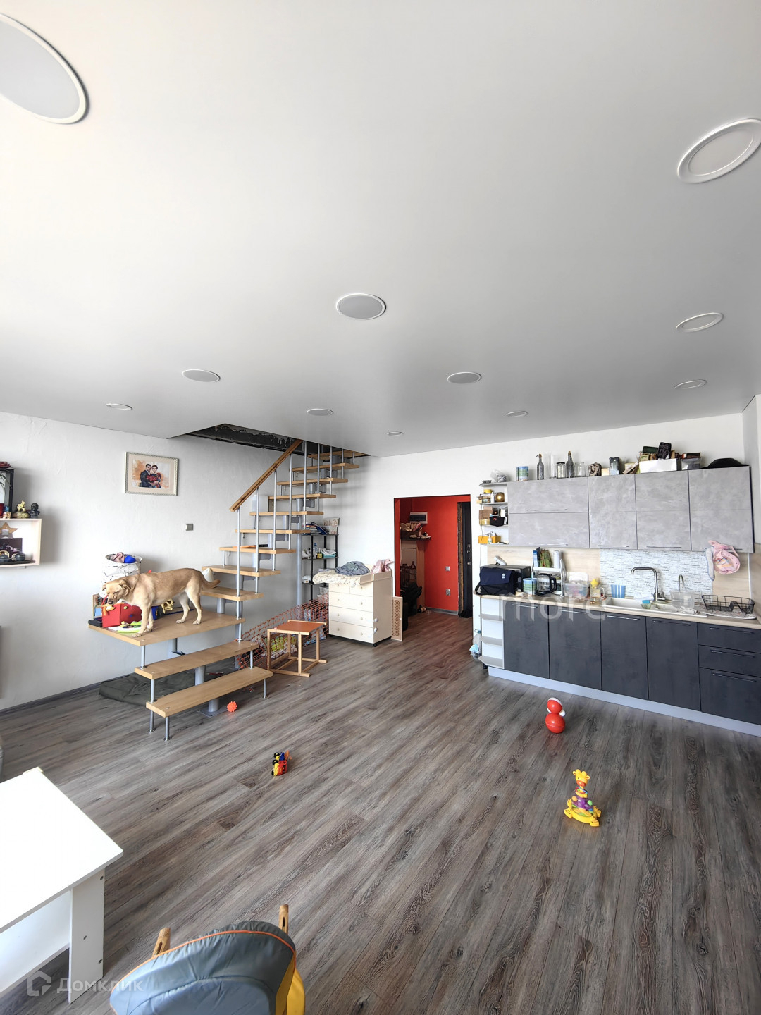 Квартира расположена на 6 этаже, 7 этажного дома. На первом этаже выполнен качественный ремонт, оборудована зона кухни (бытовая техника и кухонный гарнитур остаются). На втором этаже будет располагаться три спальни, с/у. Частично выполнен ремонт (в процессе завершения).