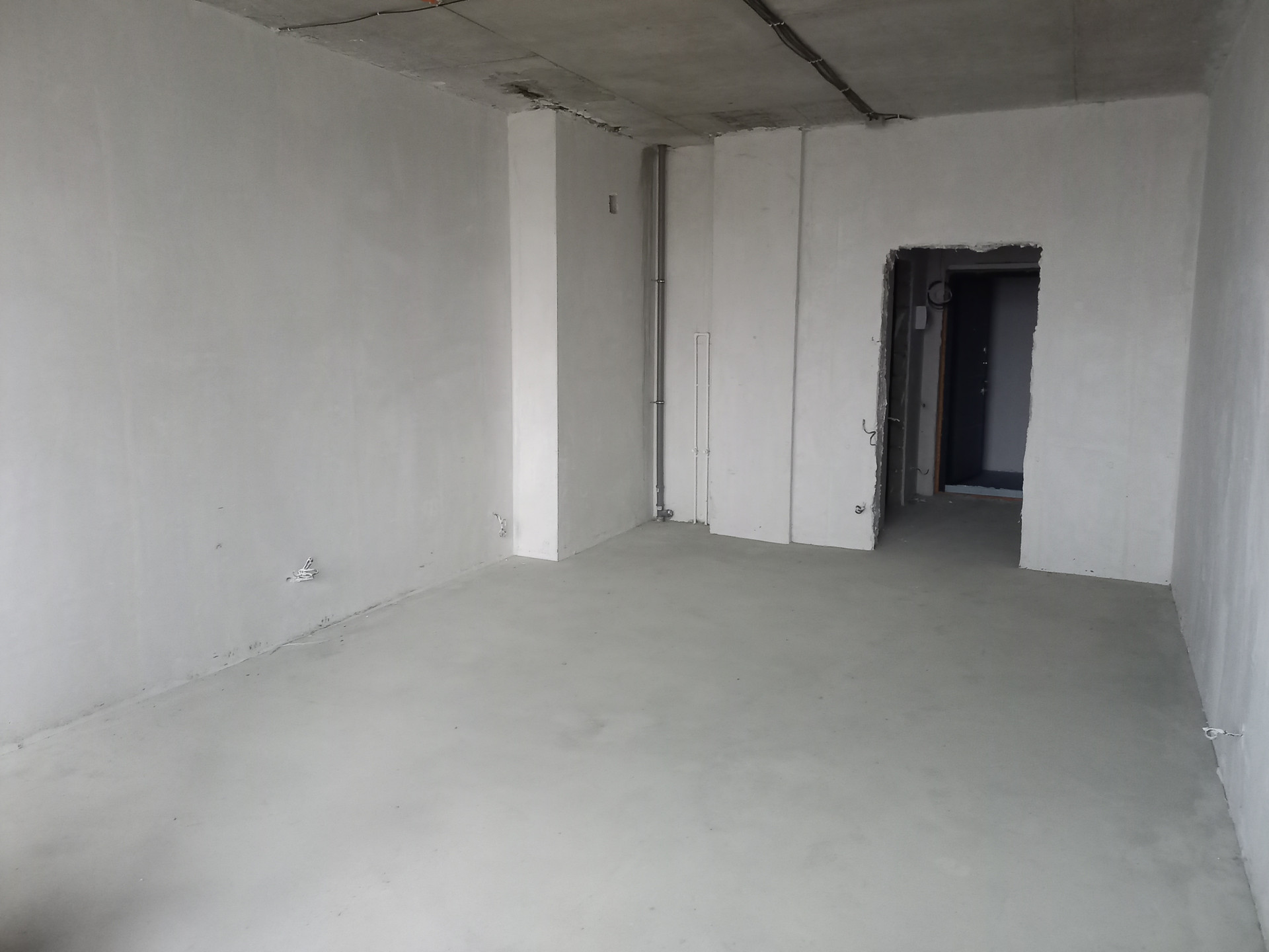 Выполнена разводка электричества, штукатурка, стяжка пола. Осталось на свой вкус выбрать обои, пол, плитку.