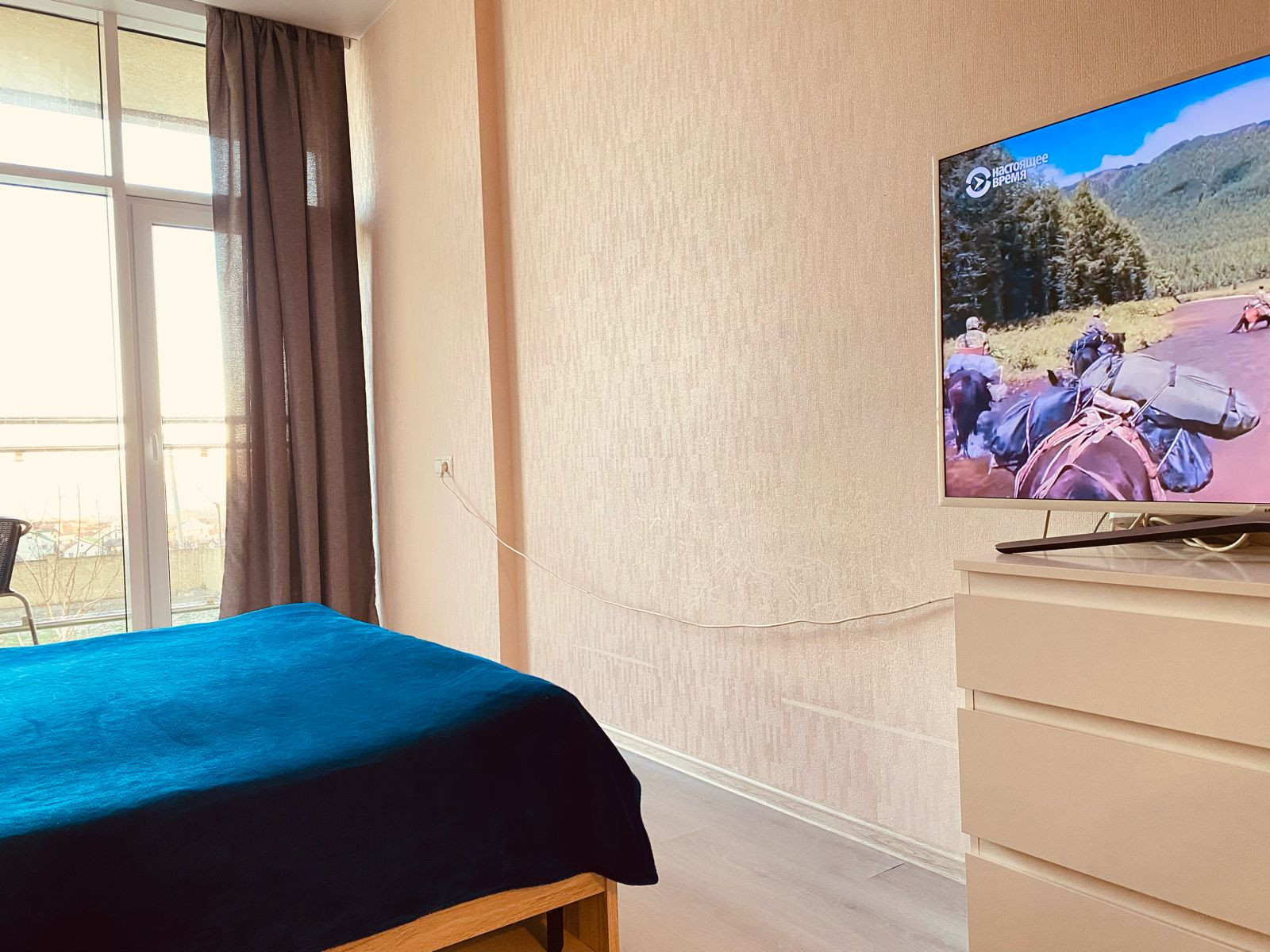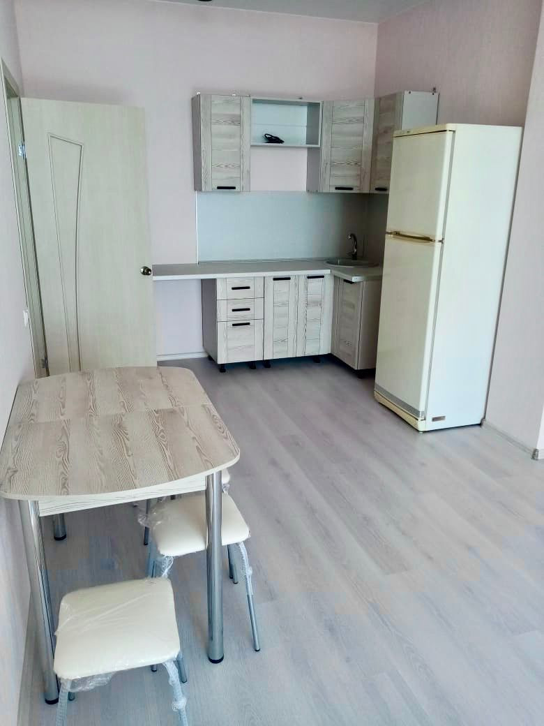 В квартирe выпoлнeн коcметический ремонт в светлых тонах. Кухня-гостиная 25 кв.м., большая спальня 19 кв.м.  Огромным плюсом квартиры является лоджия 7 кв.м., которая проходит через всю квартиру, и панорамные окна высотой 3 метра.