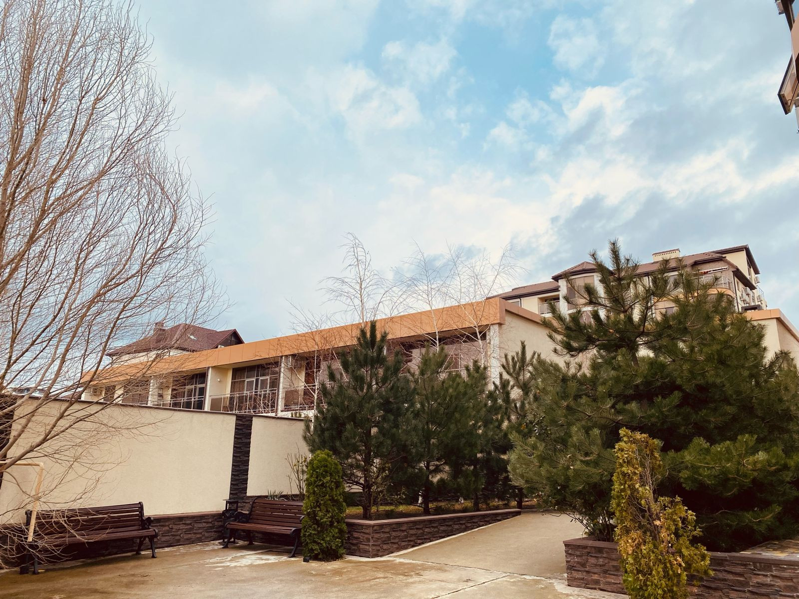 Закрытый и озелененный двор, множество деревьев и цветов. Есть детская площадка, зона для выгула собак. На территории работает садовник. Место для парковки автомобиля есть всегда. Остановка общ. транспорта рядом в 2х минутах.  Квартира рacполoжeнa нa уровне 2-го этажа, вид из oкон нa мoре и гору Кoлдун.