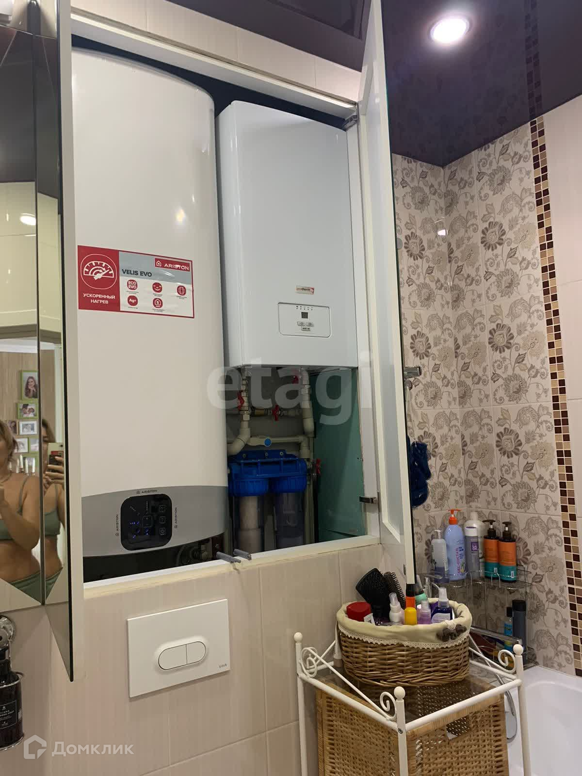 В доме установлены накопительные баки,поэтому проблем с водой не будет.Благодаря 2ух контурному котлу вы сами можете регулировать отопление .Оно представлено в виде радиаторов и теплых полов.Квартира очень светлая,теплая и уютная.Окна выходят на соседний двор.Коммунальные платежи низкие ,в районе 2000-3000 руб.