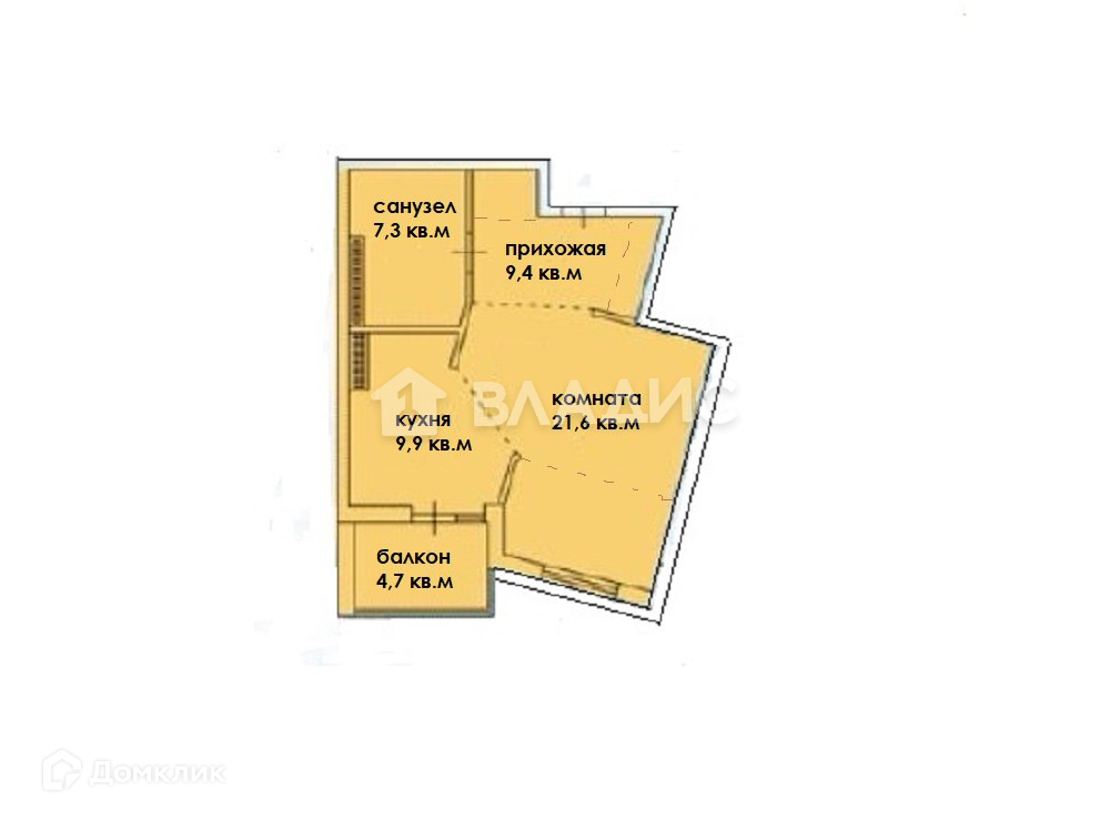 Общая площадь 47.3 м2