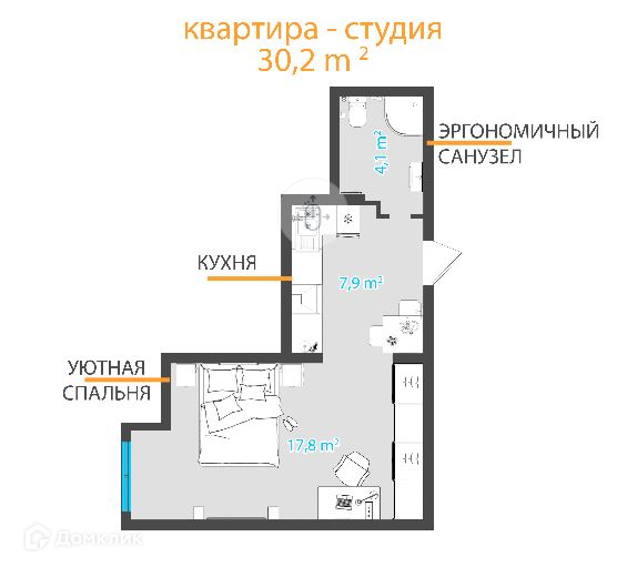 Общая площадь 30 м2