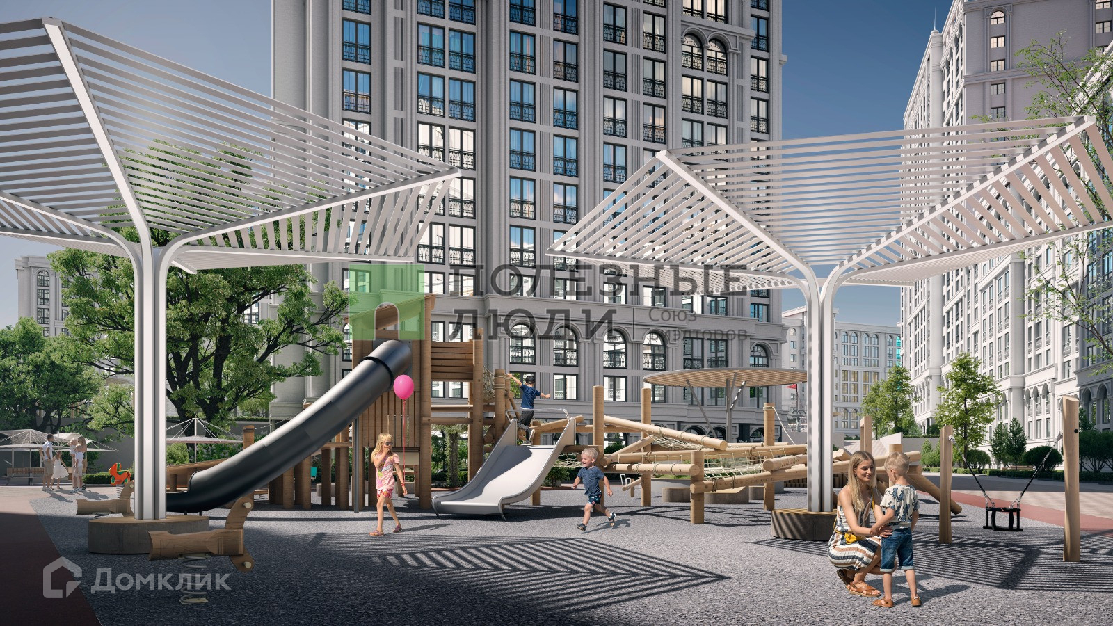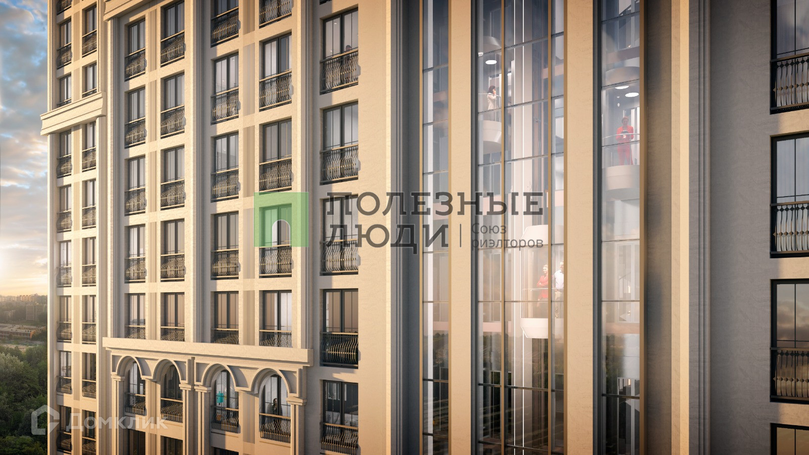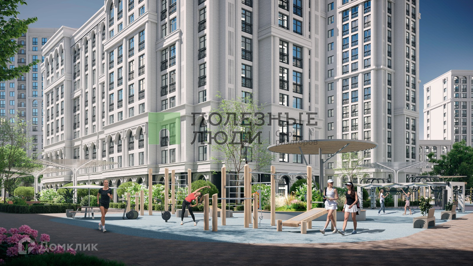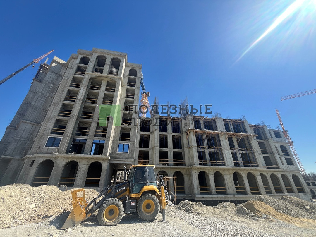 Квартира находится в новом жилом комплексе, который состоит из нескольких зданий. Здания выполнены в современном стиле и имеют красивый дизайн.