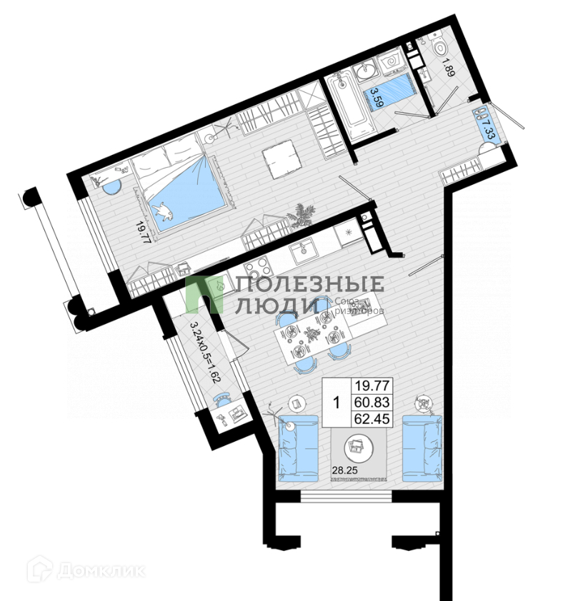 Жилая площадь 22.8 м2