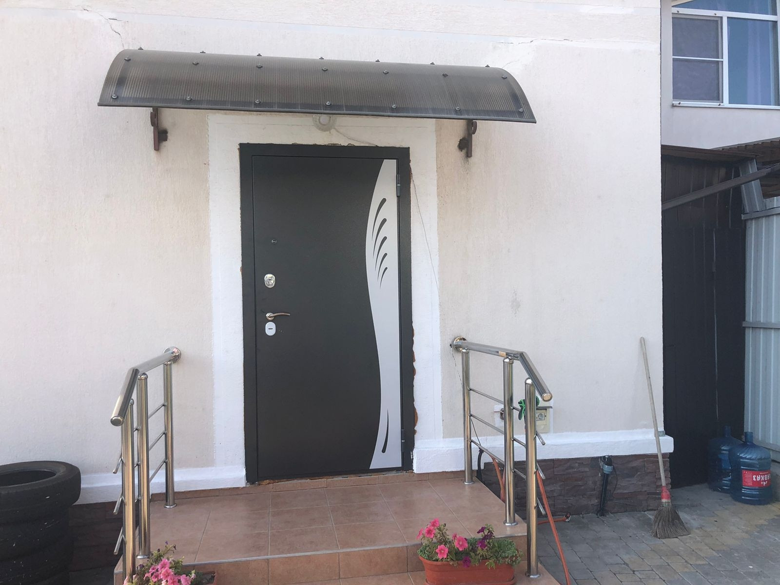 Отлично продумана лестница- выложена нескользкой плиткой !
