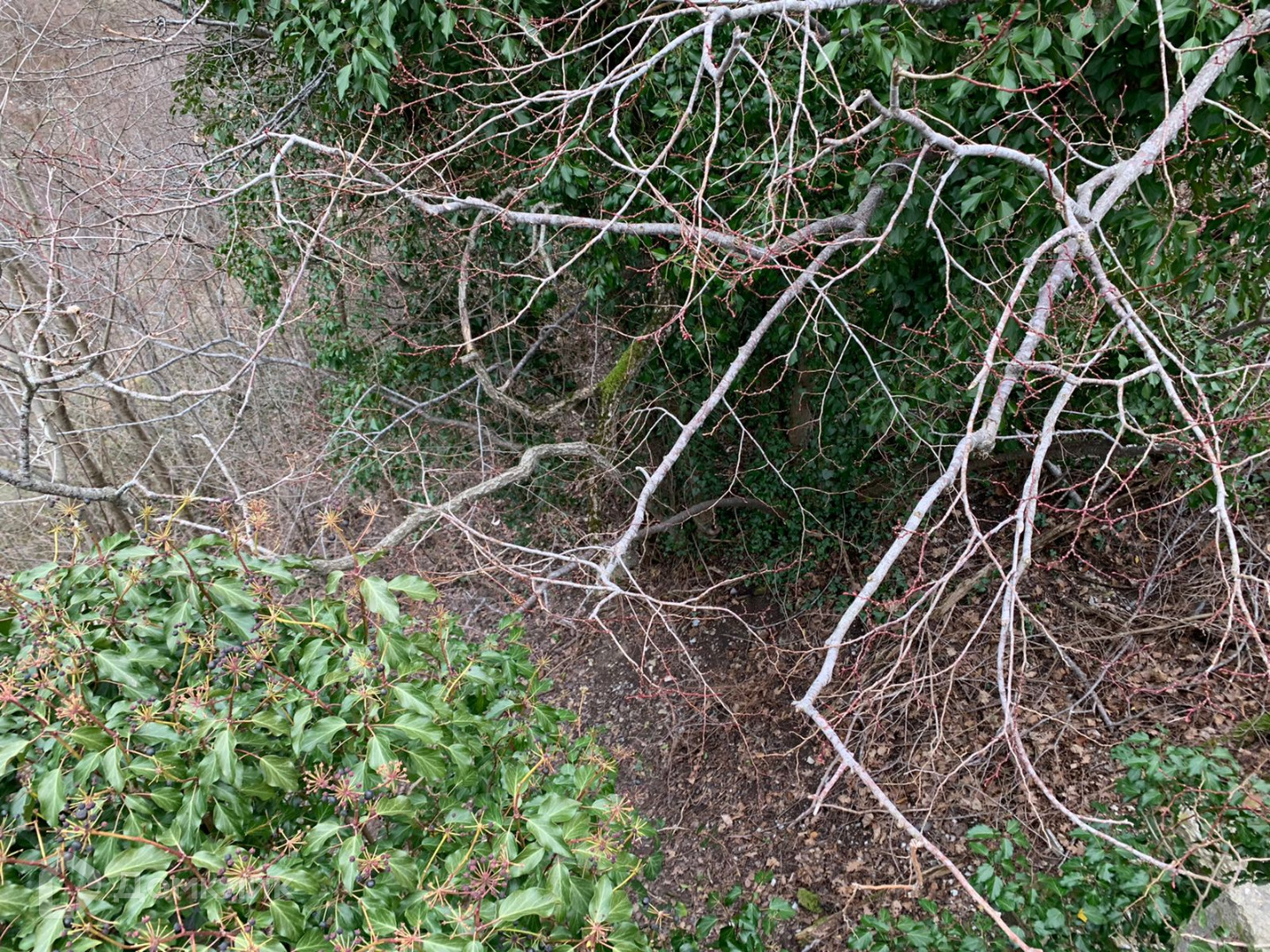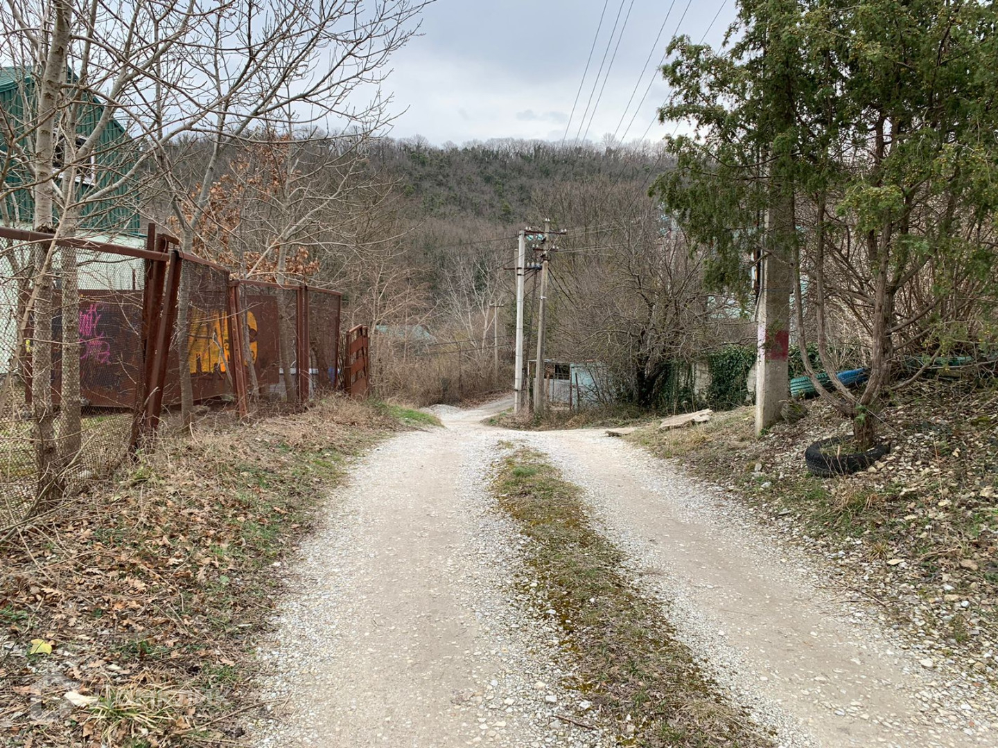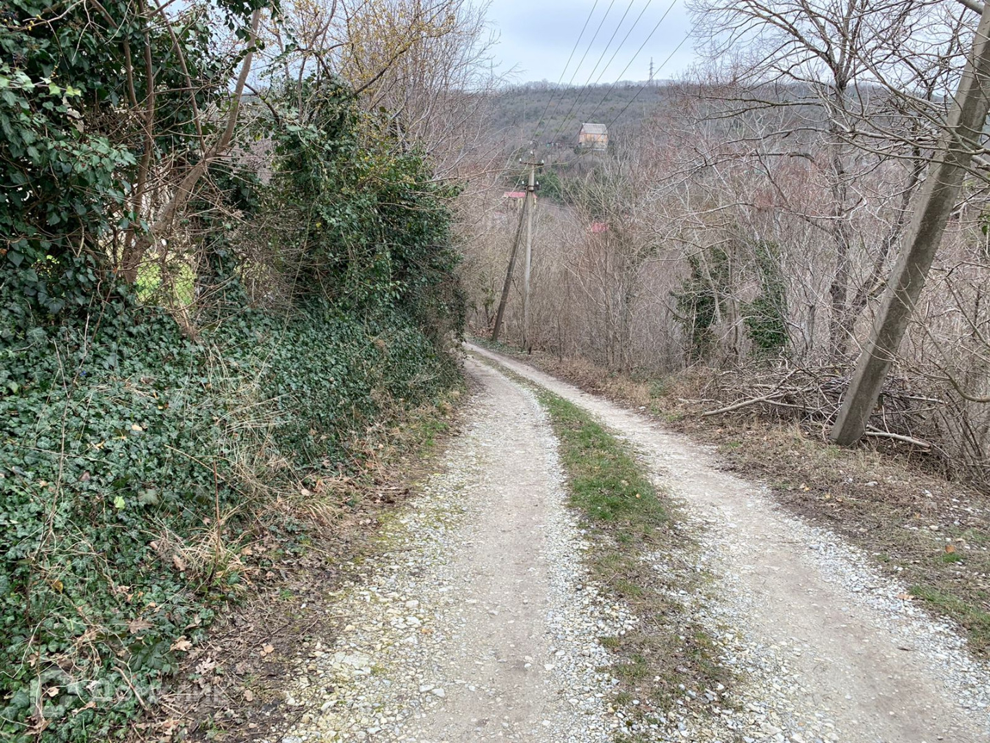 Рядом с участком протекает ручей, дорога грунтовая, по правой стороне граничит с соседним участком, а вот по левой никого нет.