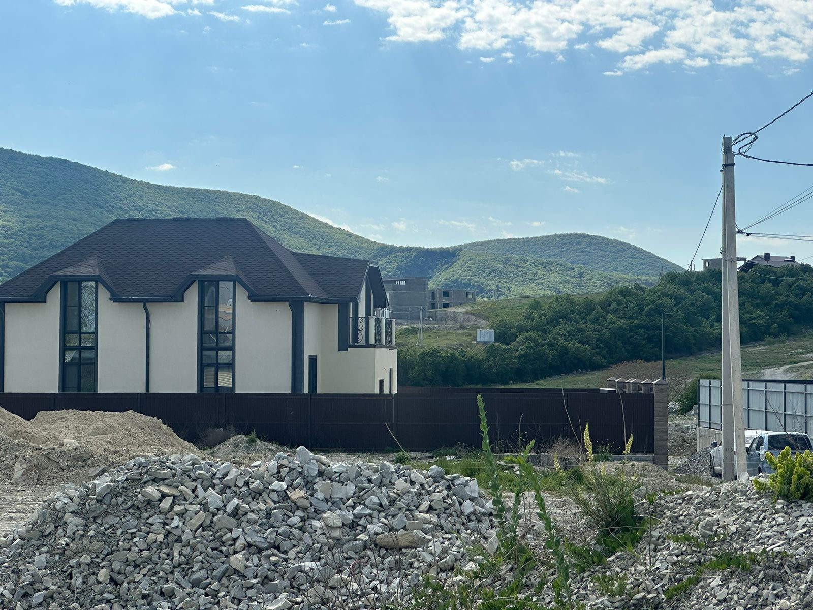 Участок ровный и уже готов к началу строительства дома мечты: столбы эл.передач установлены по меже, есть канализационные люки.