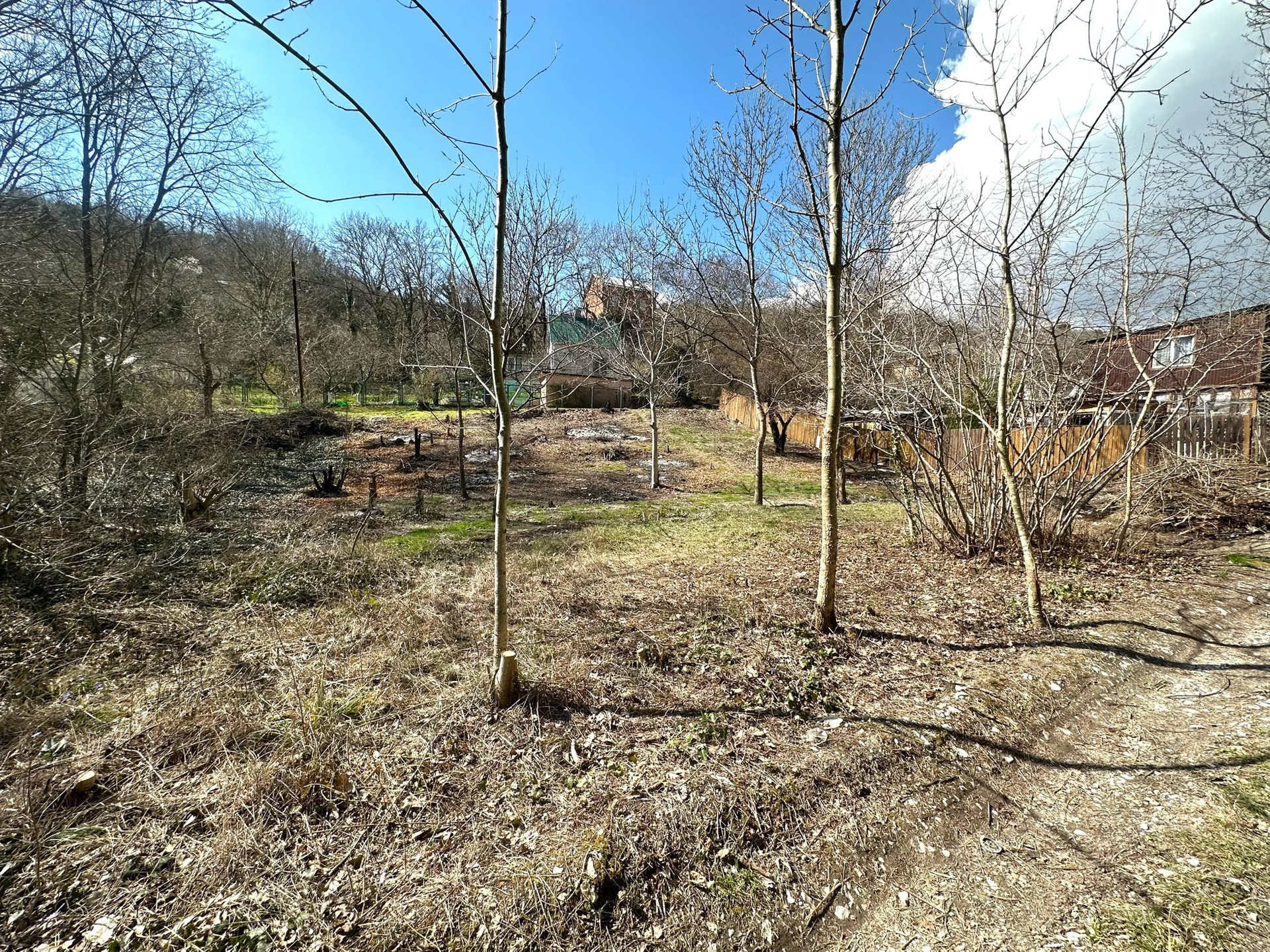 Участок практически ровный, полностью расчищен! Фасады 22 и 21.7 м с верхней и нижней улицы соответственно. Соседи напротив, слева и по улице живут постоянно.
